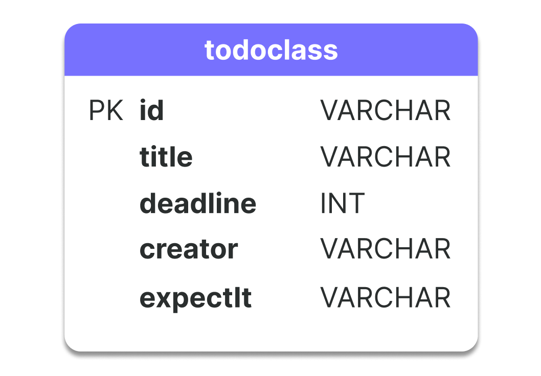 - expectIt : 투두클래스를 완수했을 때 따라오는 결과 / VARCHAR type