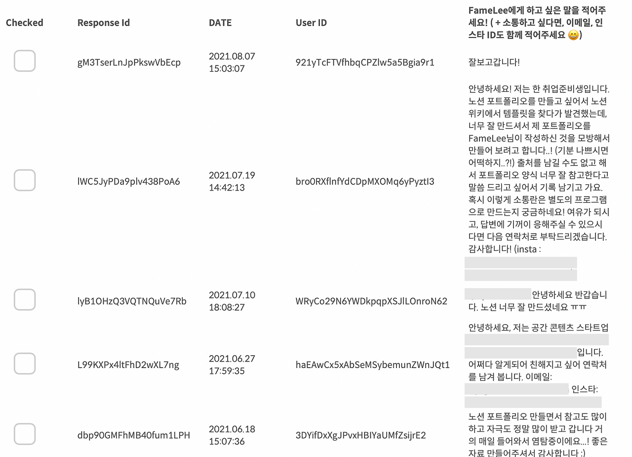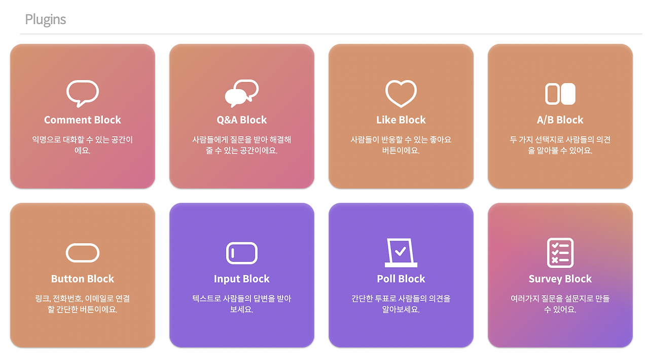 노션에 외부 url을 임베디드 할 수 있는데, Joey는 이 임베디드 기능을 활용해 노션 페이지에서 인터렉션을 가능케 한다. 댓글 남기기, 설문 조사, 좋아요, 메일 보내기 등 다양한 기능을 제공한다. 내 포트폴리오에 구현된 연락 남기기도 Joey를 활용했다.