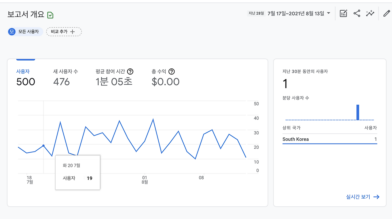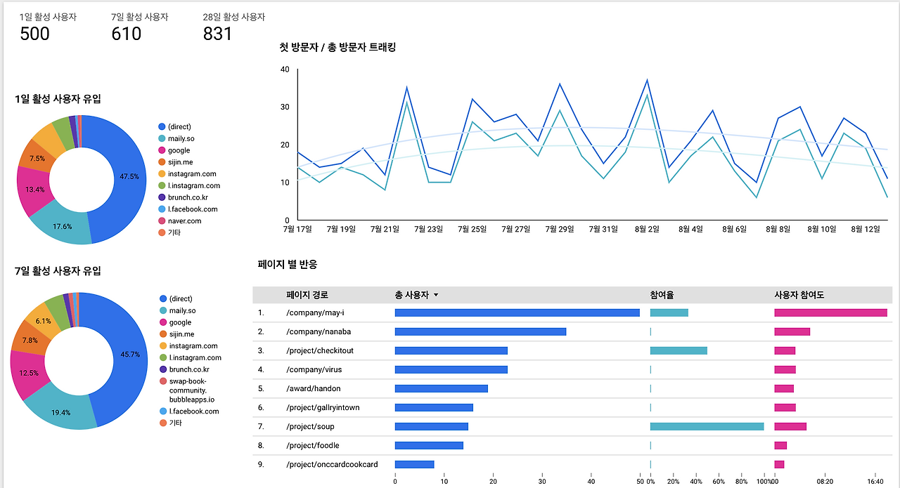 GA 데이터를 Google Data Studio와 연동해서 나만의 포트폴리오 대시보드를 만들어 볼 수도 있다. 이를 통해, 사람들이 내 포트폴리오에서 어떤 반응을 보였는지 파악하고, 이 데이터를 기반으로 포트폴리오를 개선해 나가면 된다.