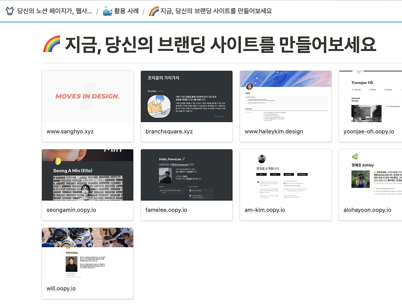 앞서 말했듯이, 노션은 third party와 함께 쓰일 때, 진가를 발휘한다. 노션 포트폴리오를 만들기 위해, oopy와 joey라는 툴을 이용했다. 각 툴의 url은 가장 밑에서 확인할 수 있다.