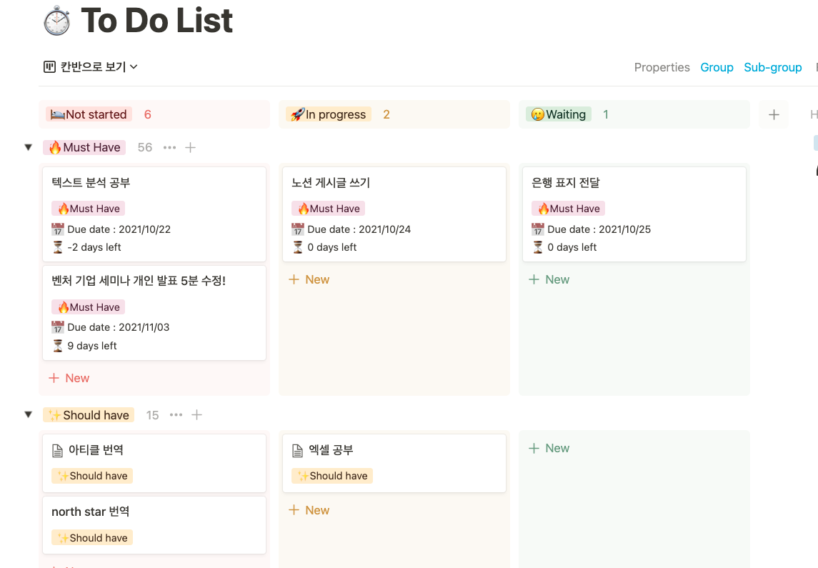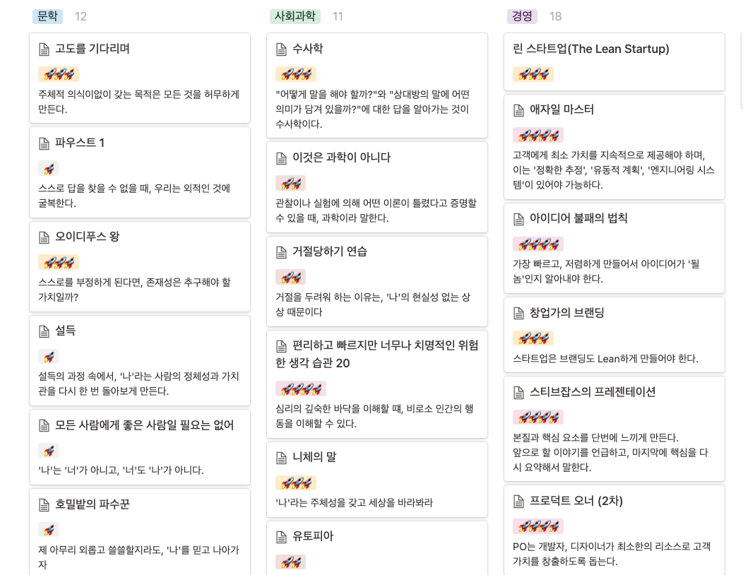 노션으로 포트폴리오로 만들고 싶어서, 혹은 이번에 프로젝트 협업을 노션으로 하고 싶어서 등등 각자마다 노션을 시작한 이유는 달랐다. 친구들에게 커피를 얻어먹으면서 노션을 알려줬다. 아 잠만 1시간에 커피 1잔이면 최저 임금보다 못하는데...? 친구들에게 내가 노션을 어떻게 쓰는지 보여줄 때마다, 모두가 신기하다는 눈빛으로 쳐다봤다. 노션에 익숙한 사람이라면 모두 나만큼 쓰고 있는 줄 알았는데, 알고 보니 MBTI가 극한의 J인 나만 이 정도로 쓰는 거였다.