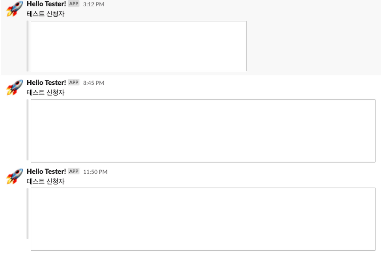 때마침(?) 브런치가 스타트업 콘텐츠 위주라서, 스타트업에서 활동하시거나 관심이 있는 분들이 자주 들어온다. 설정한 타겟이 바로 옆에 있는 셈이었고, 프로젝트의 1차 모델 배포를 브런치에서 진행했다. 브런치에 새로 작성한 글의 최하단에 테스트 신청 링크를 남겼다. 물론 테스터가 충분히 모였다고 생각했을 때, 해당 링크를 지웠습니다. 구글폼에 틈틈이 들어가 누가 신청했는지 확인하기 어렵다고 판단해 워크플로우 자동화 툴인 자피어를 활용했다. 자피어로 구글 폼과 슬랙을 연결시켰고, 구글 폼에 새로운 신청이 올 때마다 슬랙에 알림이 가도록 설정헀다.