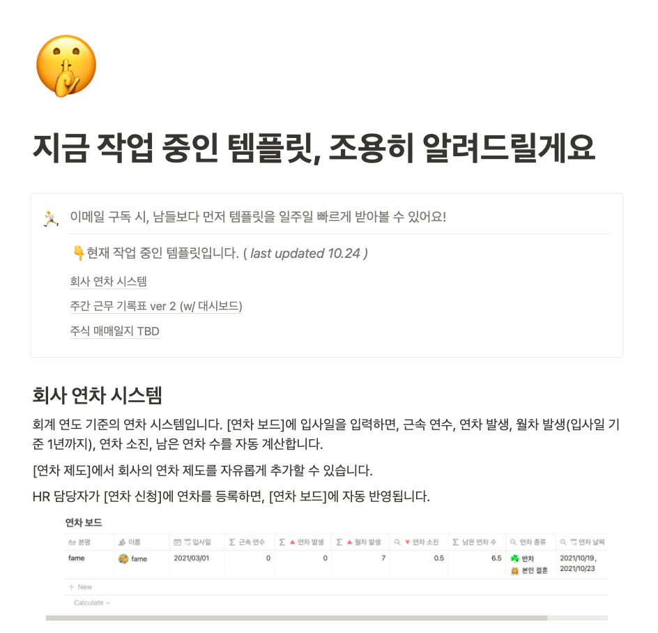 현재 배포 중인 노션 무료 템플릿 홈페이지