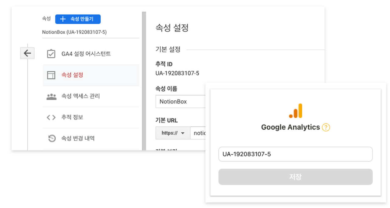 유저가 어떤 템플릿에 관심을 갖는지 알기 위해선 데이터 수집 환경이 필요하다. 우피에서는 플러그인 기능으로 Google Analytics를 제공하는데, GA 계정을 생성하고 추적 ID를 전달하면 된다.