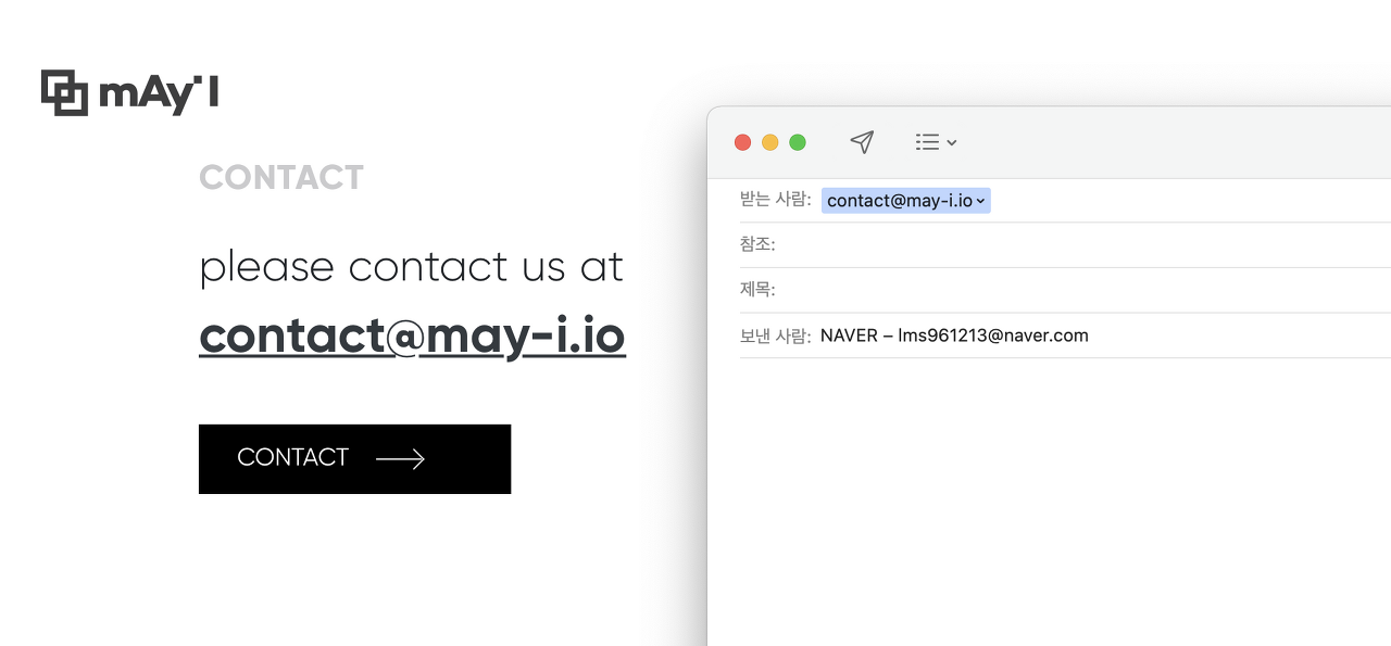 '홈페이지 컨택 수가 증가하지 않는다'를 문제 현상으로 보고, 5 Whys를 통해 문제 원인을 찾기 시작했다. 여러 번의 회의 끝에, 문제 원인으로 '번거로움'에 주목했다. 고객은 메이아이에 컨택을 하기 위해 [(1) 홈페이지 접속 -> (2) 페이지 최하단까지 스크롤 -> (3) 메이 아이 메일 확인 -> (4) 메일 작성 및 전송]라는 긴 과정을 거첬다. 이 일련의 과정이 고객을 번거롭게 만들고, 결과적으로 컨택을 하지 않고 이탈하게 만든다고 판단했다.