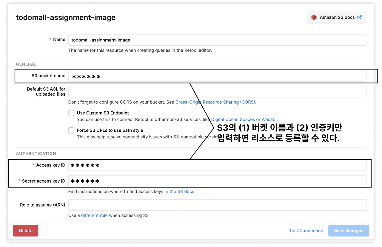 Amazon S3를 선택하면, 서버 접근 인증키를 입력하면 되는데 이건 AWS의 IAM에서 확인 가능하다. 접근하려는 S3 버킷(a.k.a 최상위 폴더)을 선택하고, 인증키를 누르면 S3 리소스 등록은 끝난다. 이제 S3에 저장된 데이터를 바로바로 불러올 수 있다.