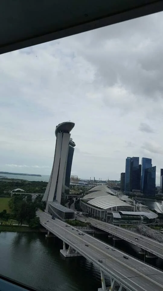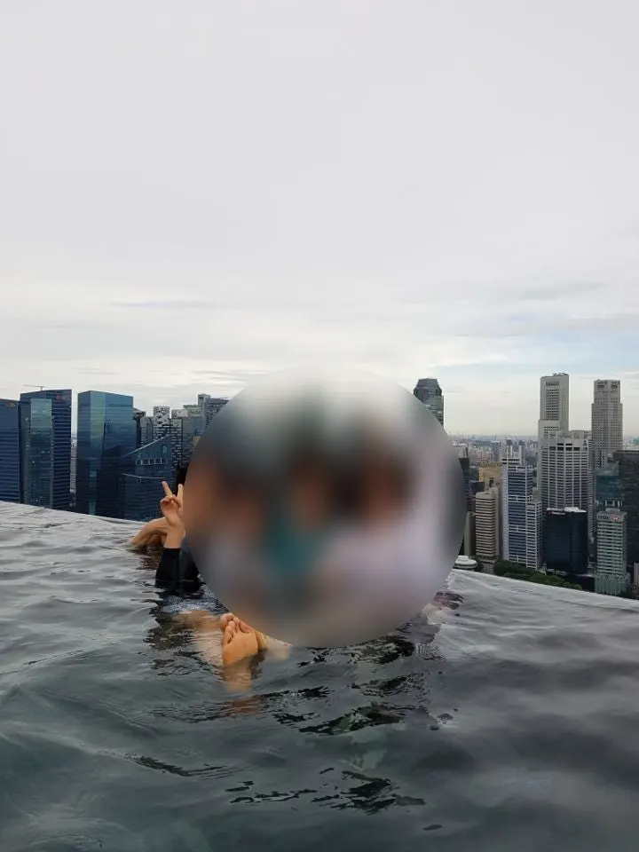싱가포르 마리나베이샌즈 호텔 루프탑 수영장에서