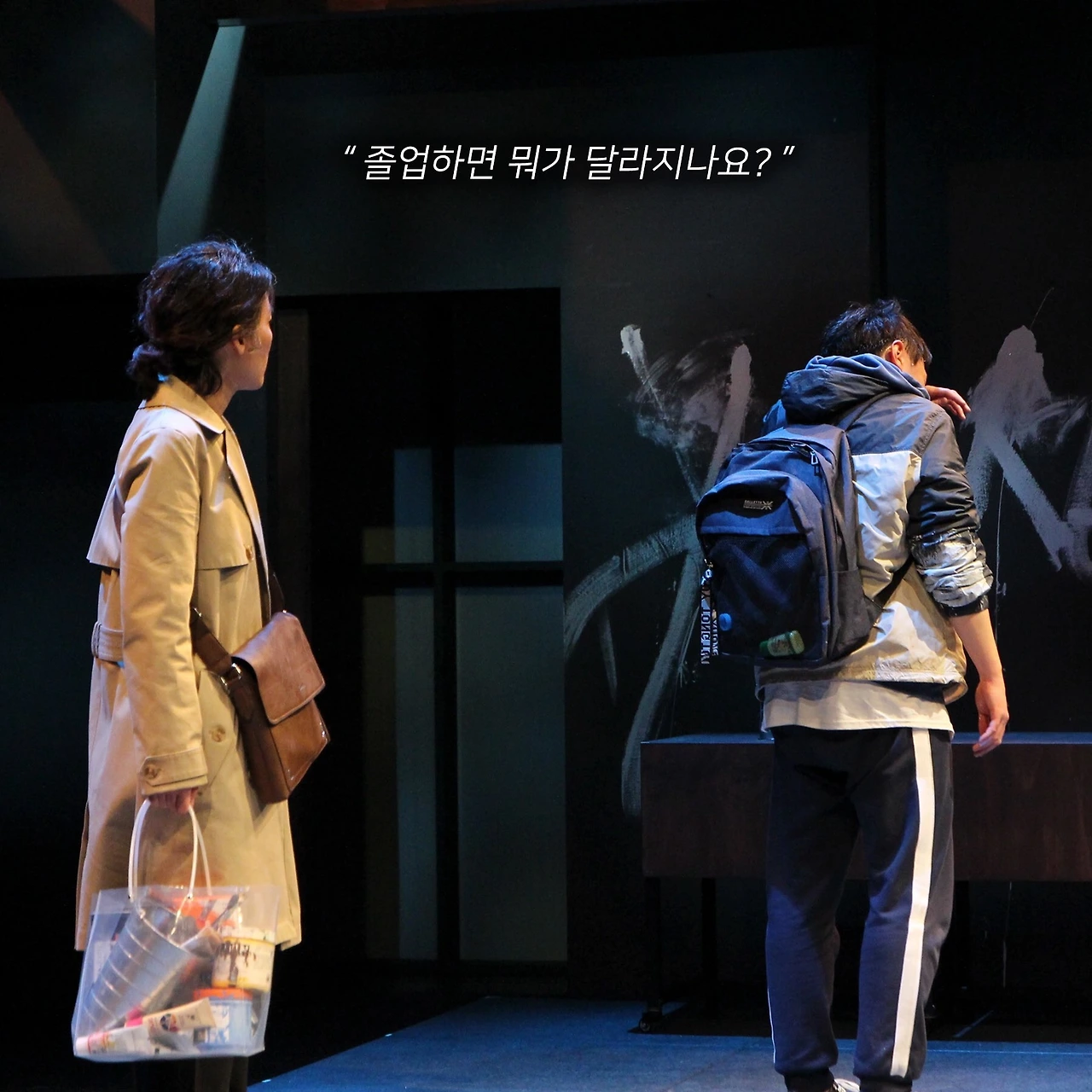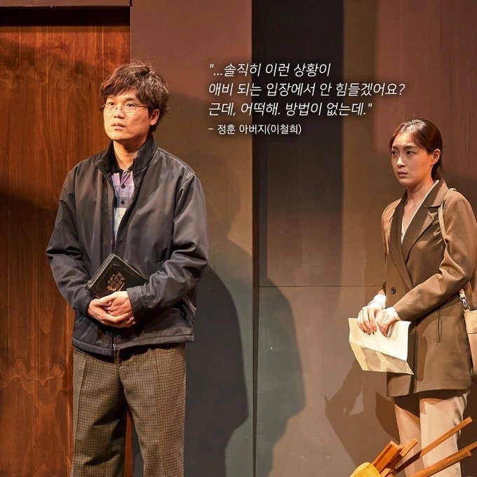 재철, 순자, 민지에 비해 젊은 윤우는 다른 어른들과는 상이한 모습을 보인다. 임대 아파트 아이들에게 좋은 알바 자리를 정리한 엑셀 파일을 공유하고, 예고나 대학에 진학하지 않고도 충분히 원하는 일을 하며 살아갈 수 있다고 생각하는 등 임대 아파트 아이들에 대해 훨씬 낙천적이고 열린 자세를 보인다. 현실에 윤우와 같은 선생님이 존재할까 싶을 정도로 이상적이고 비현실적이지만, 관객 입장에서는 극을 통해 직시하는 답답한 현실 속에서 마주한 동아줄을 놓치고 싶지 않다.