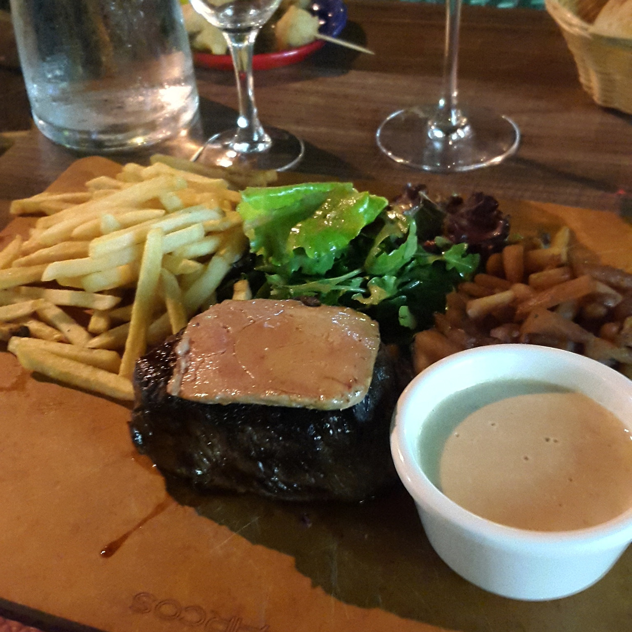 저 스테이크 위의 고기가 아마도 내장류 (간 같은) 같은데, 고소하고 오묘한 맛이었다.