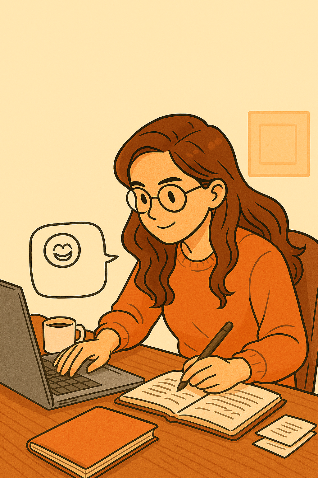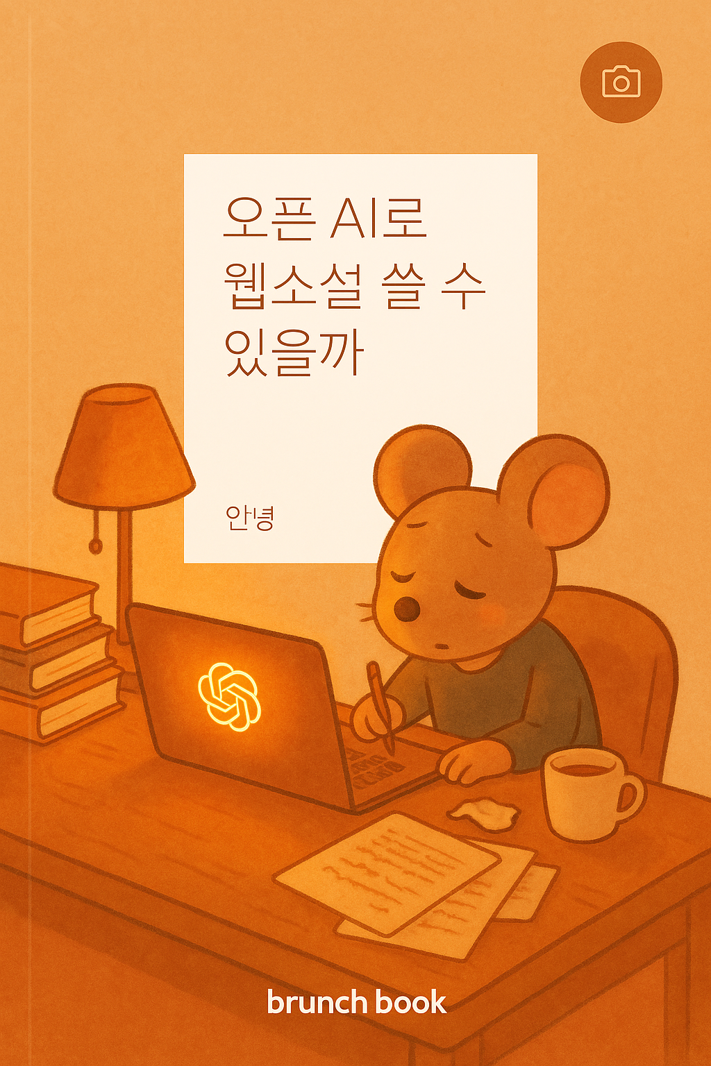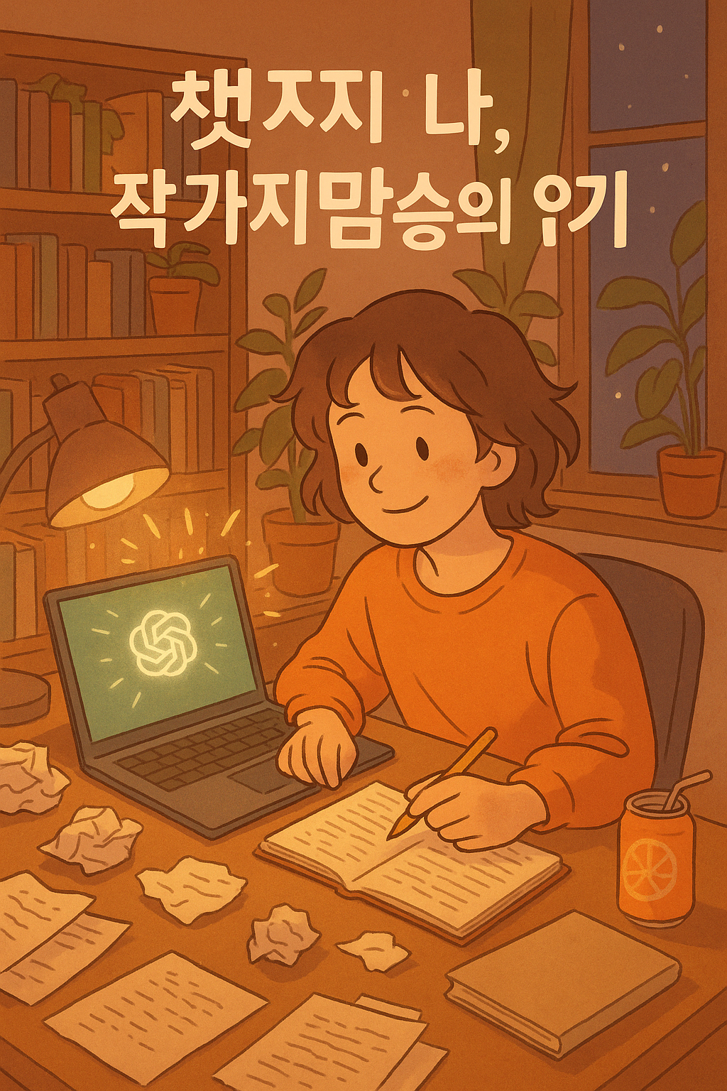 여전히 챗GPT 로고는 빛나고, 노트북 위에 펜으로 글을 쓰고 있다.