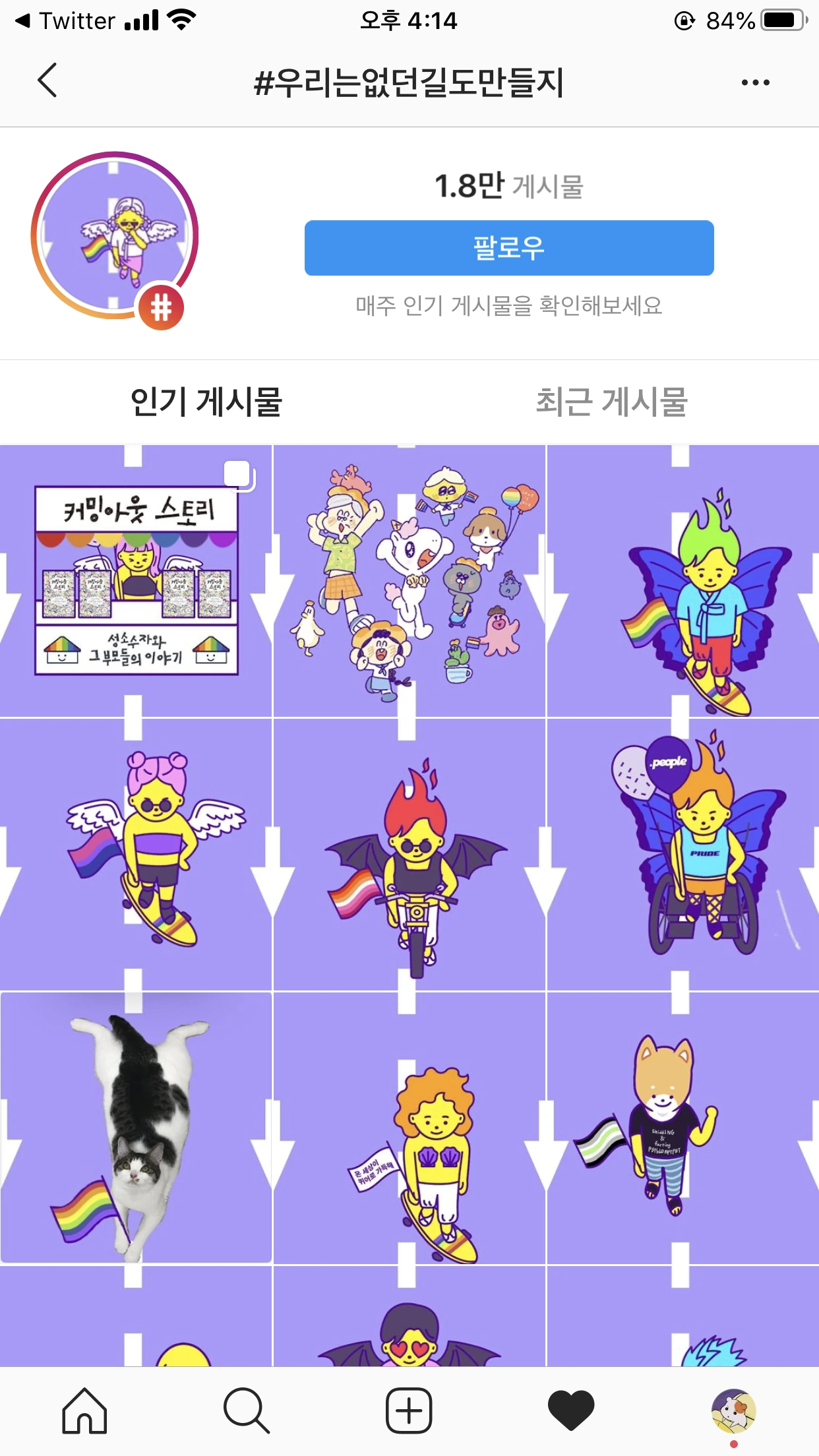 여느때와 다르지않게 누워서 트위터를 보고있는데 인상적인 컨텐츠가 보였다. 인스타 피드로 여러사람이 마치 행진하고있는듯한 이미지. 우와 이게 뭐야? 자세히 들여다보니 온라인을 통해 퀴어퍼레이드를 하는 것이라고 한다.