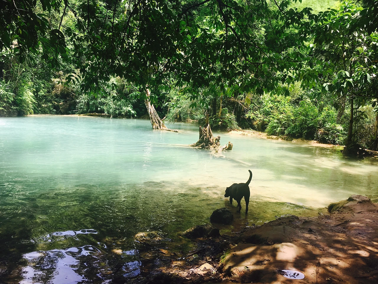 한 시간을 넘게 달려서 꽝시에 도착하고, 본격적으로 꽝시 폭포 탐험이 시작되었다. 꽝시 폭포로 들어가는 입구 초입에는 곰들이 한가로이 누워있거나 돌아다니고 있었는데 그 모습이 신기했다. 손을 뻗으면 닿을 것 같은 대나무 펜스 하나를 사이에 두고 이렇게 가까이서 곰들을 보다니. 일본 텐노지 동물원에서 보았던 힘없이 늘어진 곰들이 생각나 기분이 미묘했다.