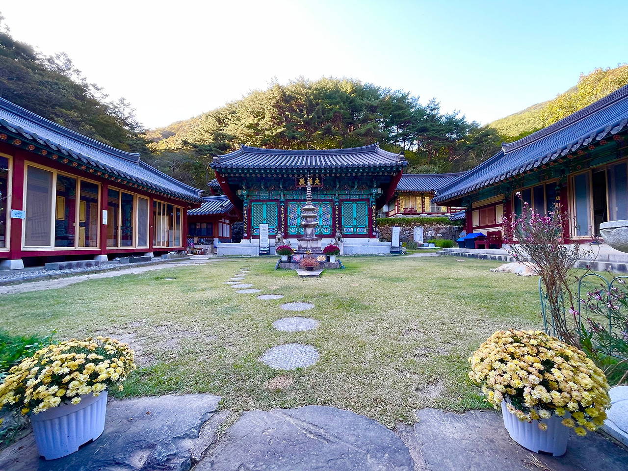 암자답게 매우 작은 경내였지만, 규모는 전혀 중요하지 않았다. 이미 나는 경내에 들어선 순간 문수암에 빠져버렸기 때문에. 템플을 담당하는 보살님에게 템플스테이를 왔다고 말하니, 꽃무늬가 그려진 고무신이 진열되어 있는 곳을 가리키며 발사이즈에 맞는 고무신으로 갈아 신고 오면 된다고 했다.