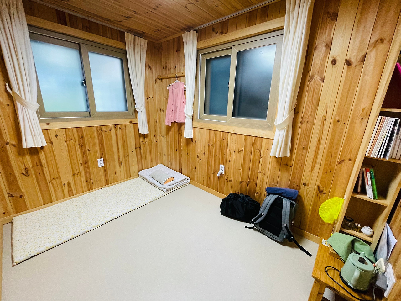 템플 보살님이 고무신으로 갈아 신고 온 나를 보더니 템플스테이용 법복을 준비해서 내가 이틀간 머물 방으로 안내했다. 내가 머물 방은 ‘꽃비마당’의 아래층에 위치한 공간이었는데, 화장실을 공용으로 옆방과 써야 한다는 것 외에 불편한 점은 하나도 없었다. 사실, 화장실을 함께 쓰는 것도 나에게는 전혀 불편한 일은 아니었다. 오랜 게스트하우스 생활로 이미 잘 단련되어 있었으니까.