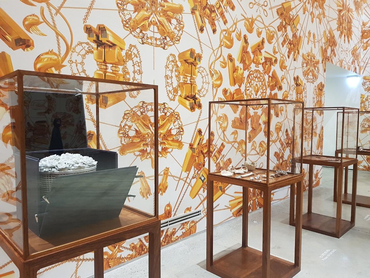 <라마처럼 보이지만 사실 알파카인 동물>, 2015, 벽지 설치, 컬러 프린트, 가변 설치