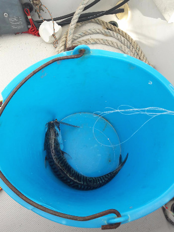 야심 차게 준비한 고등어 낚싯줄을 술술 풀었다. 고등어를 잡기 위해선 속력이 나선 안되는데 바람이 잔잔해서 이 때다 하고 한 1시간여 동안 줄을 풀어놨던 것 같다. 조금만 속력이 나도 줄 끝의 추가 수면 위로 튕튕 튕겨져 나왔다. 그러다 어느 순간 바티가 어 어! 하더니 줄 저 끝에 매달려서 끌려오는 고등어 한 마리를 발견했다. 녀석이 입을 쩍 벌리고 대가리에 칼을 찔러도 꿈쩍도 하지 않는 것으로 보아 이미 물 밑에서 사투를 한참 벌이다 죽어 있었던 걸 우리가 뒤늦게 발견하고 끌어올린 것 같다. 바티는 '고등어야 고마워'라고 했다. 나는 오늘 점심은 고등어다! 하며 항해 첫날부터 좋아라 했다.
