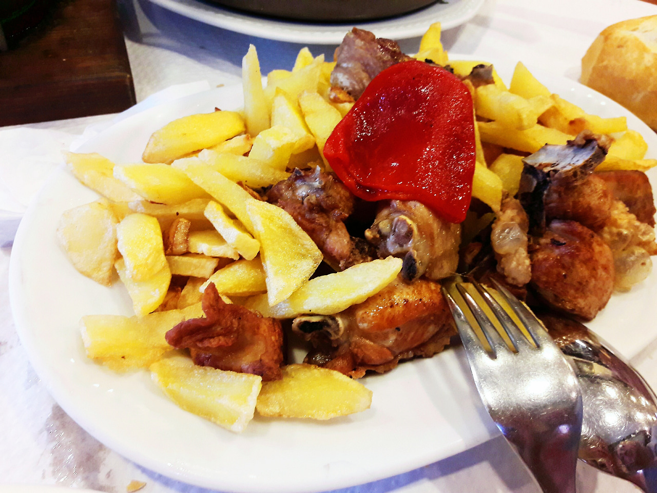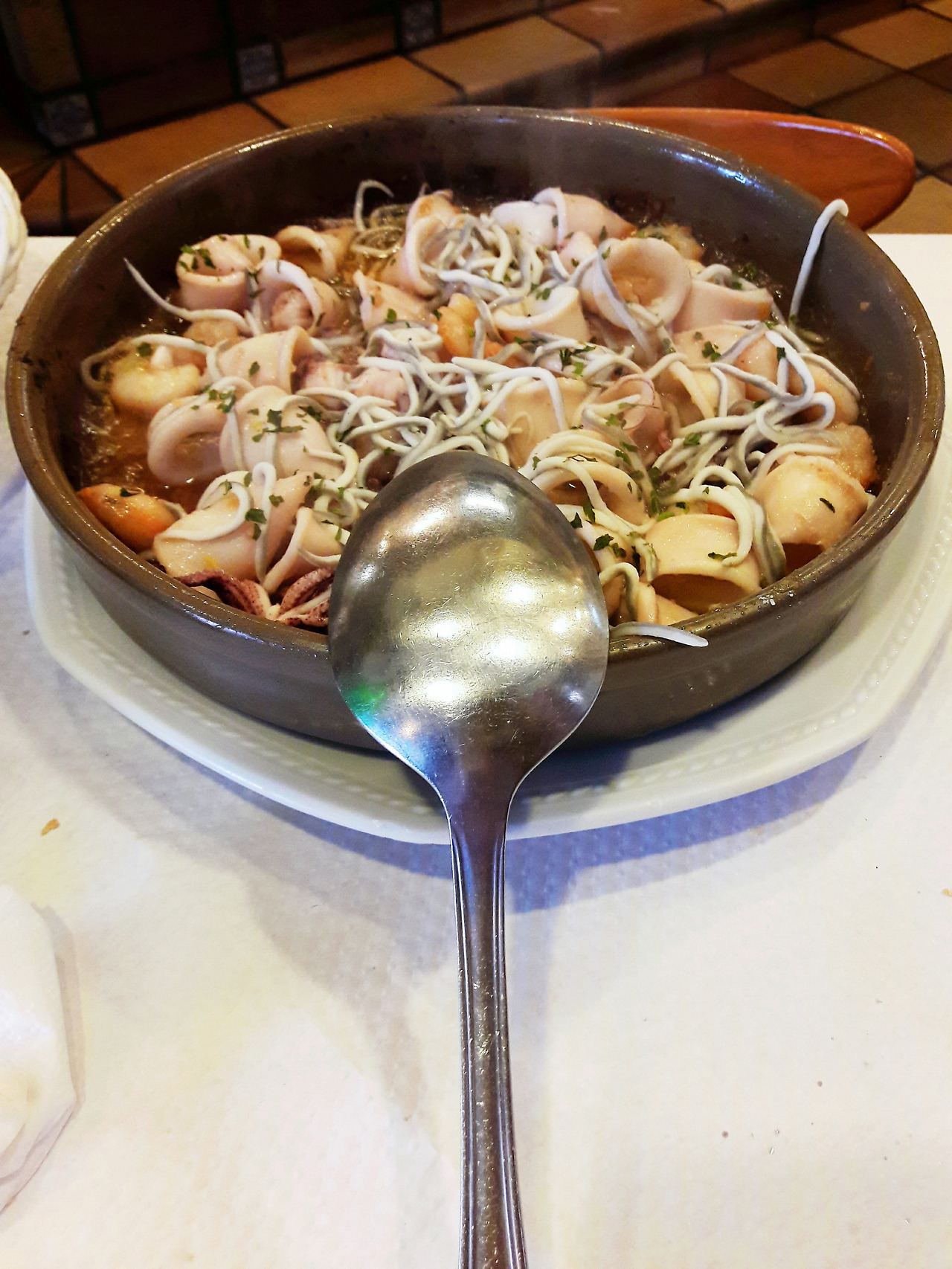 피곤을 풀 겸 시내 식당에 들어갔다. 바티가 스페인에 왔을 때마다 먹었던 작은 문어 요리와 감자튀김을 곁들인 치킨과 스페인식 사과주인 시드르cidre를 시켜서 배불리 먹었다. 산책길에 참새가 방앗간을 못 지나치듯 들른 작은 시장에서 수제 포르투칼 디저트를 파는걸 보고 고민고민하며 3개를 골라왔다.