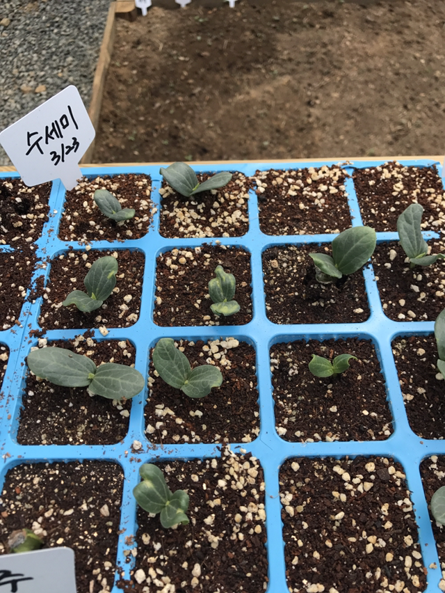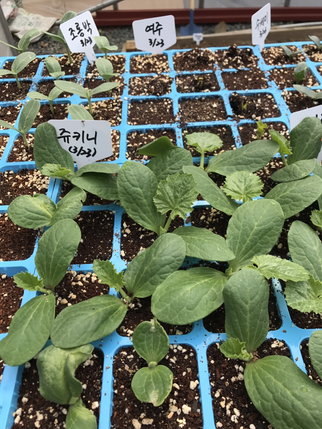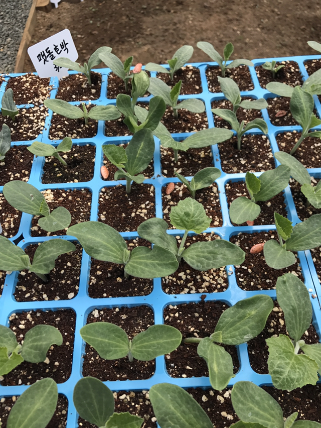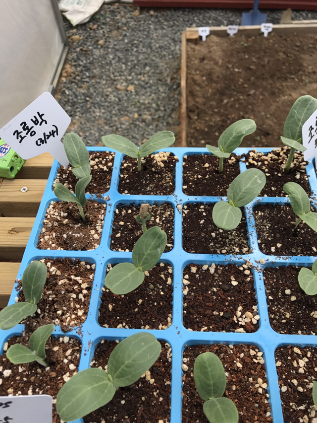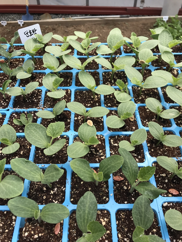 한 달이 채 못된 하우스 안엔 포트에 들어있던 씨앗들이 움을 틔우고...