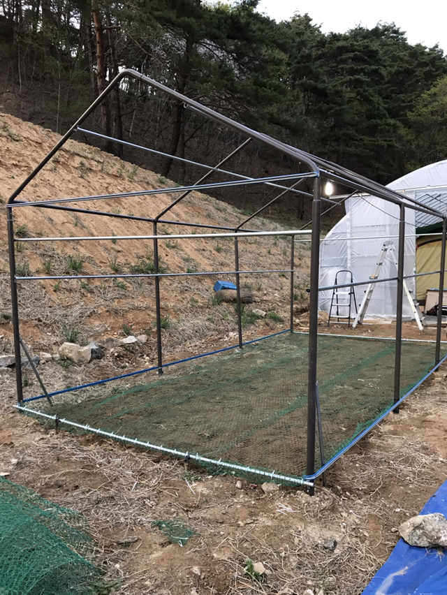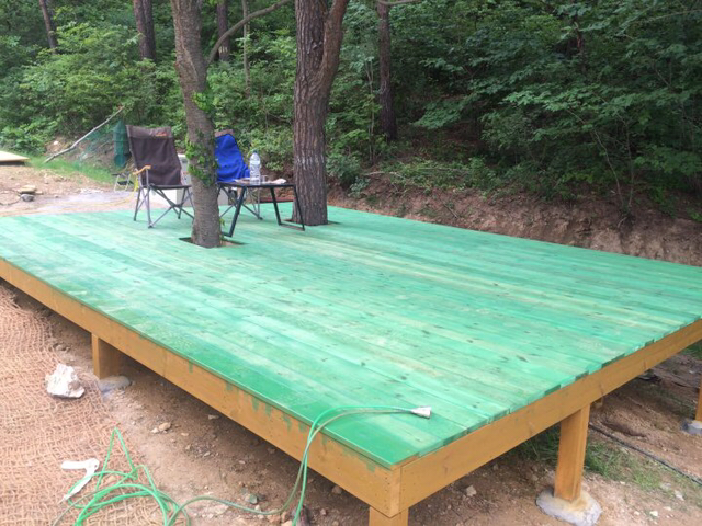 하우스를 지어 임시 아지트와 가든데크 만들고...
