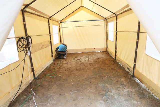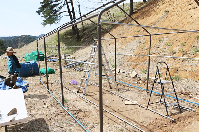 하우스에 쓰인 꼬불이(?)를 천막에 적용해 펄럭임 방지!