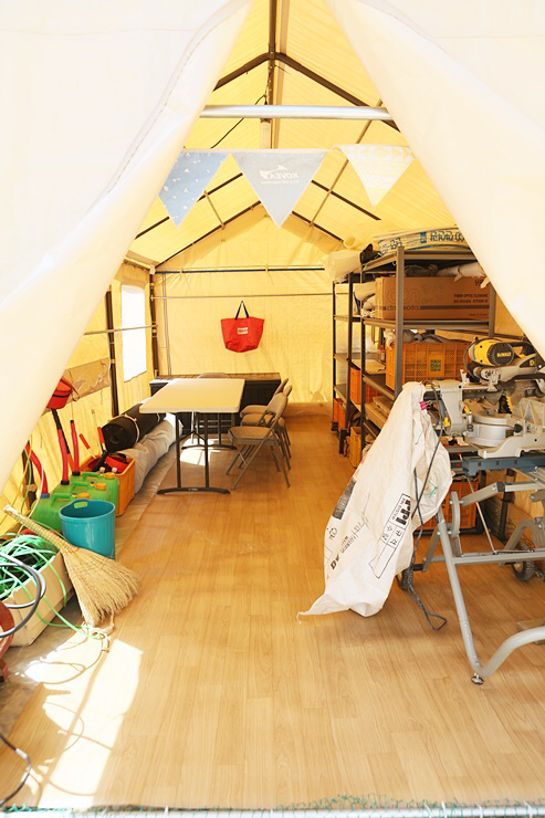 농기구 등 보관용으로 쓰는 창고를 다시 만들기로! 강풍에 맥을 못쳐 이미 찌그러졌던 천막!
