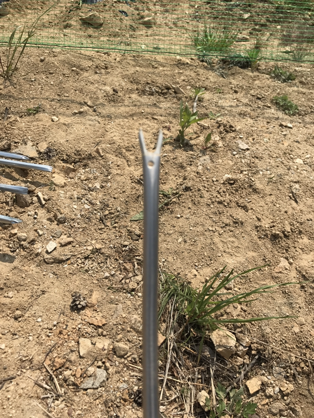 비닐 씌운 밭에 용이하게 고구마순을 심게 도와주는 기구인 것이다.