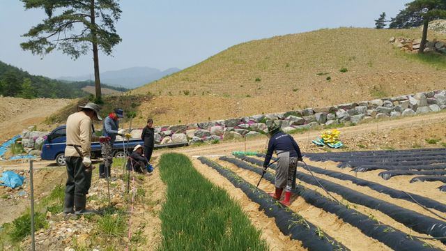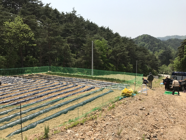 게다가 남자분들은 고구마순 및 각종 열매들을 헤칠 우려가 있는 고라니의 습격(?)에 대비해 펜스를 설치!