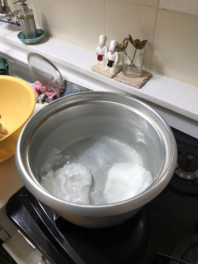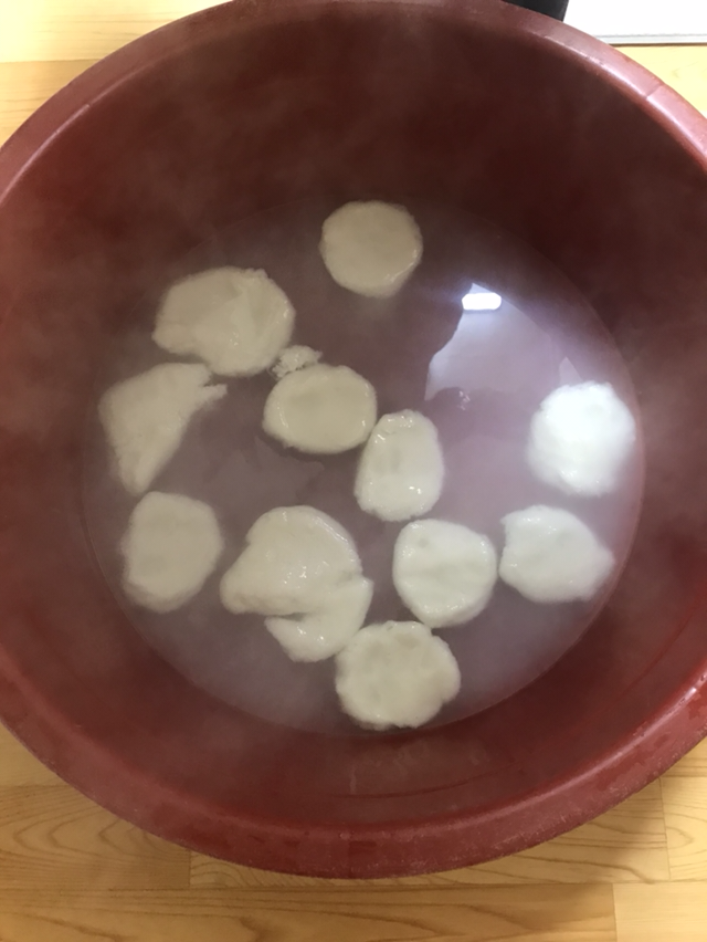 넓은 다라이에 데친 찹쌀 수제비(?) 넣고...