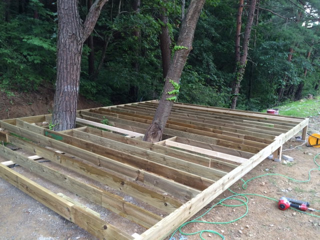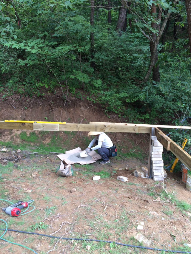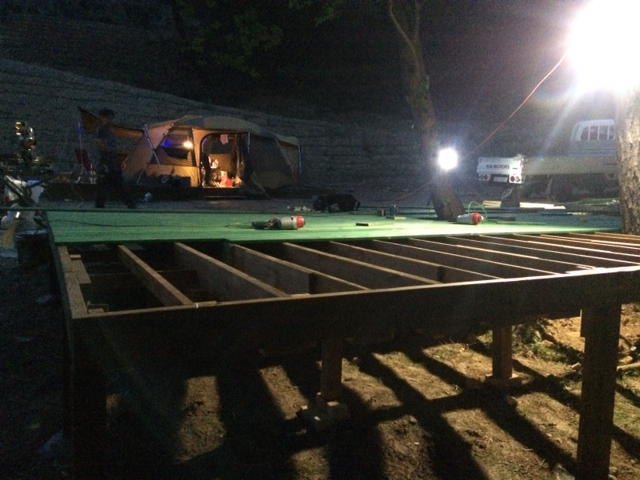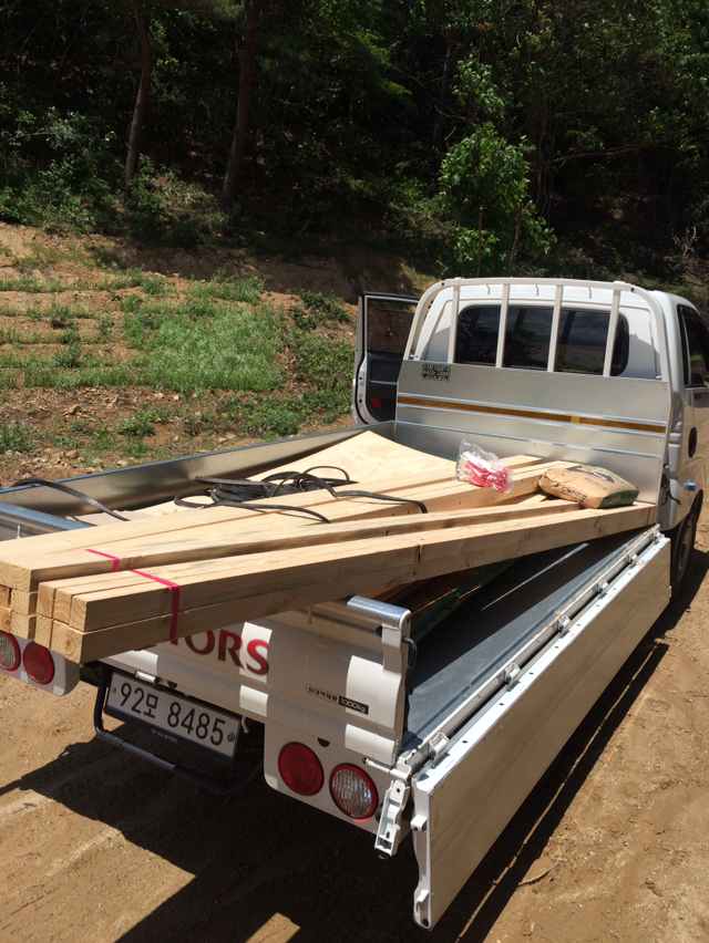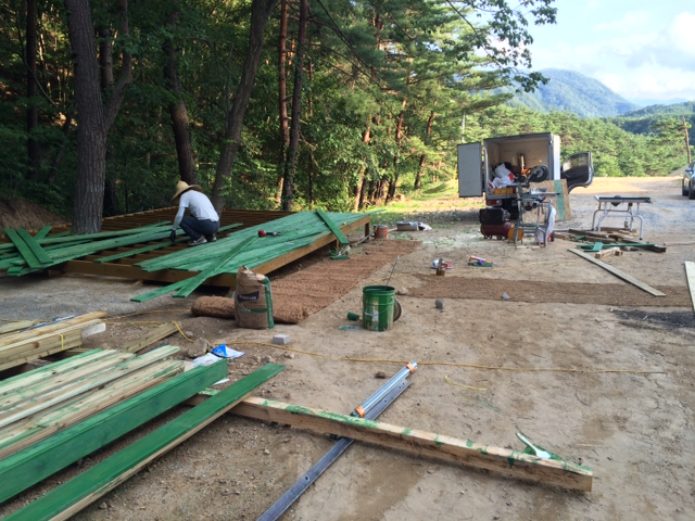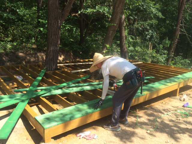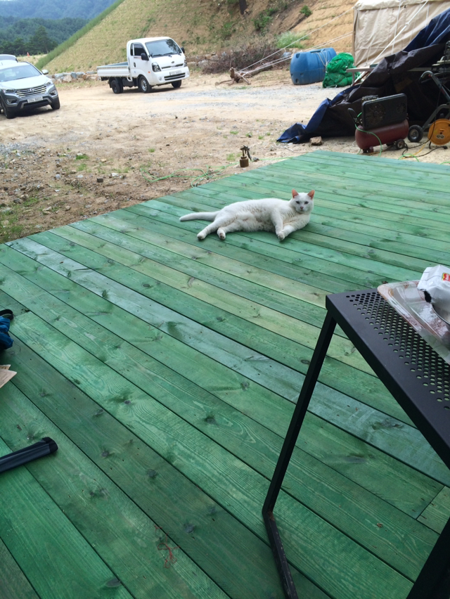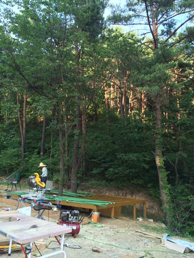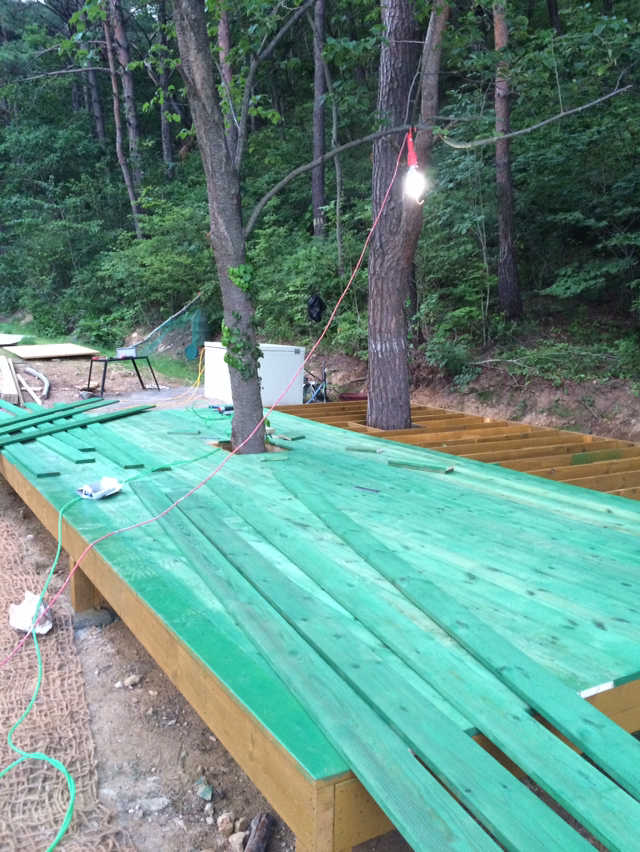 아직 수도시설을 놓기 전이라 센 물살이 버거워 데크 하나 자그맣게 짜달라했다...