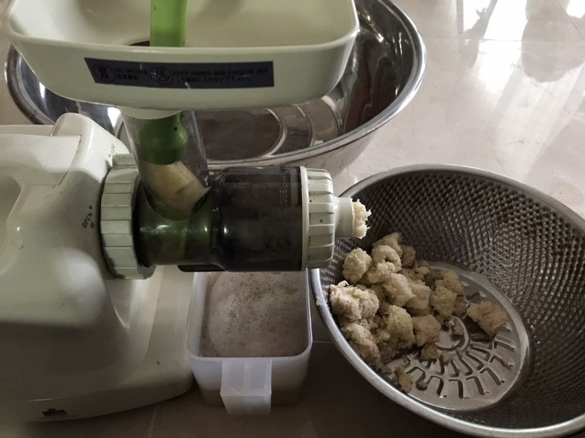 큰 다라이에 건지가 둥둥ㅠ 힘은 들고 얻어지는 전분은 거의 없다.