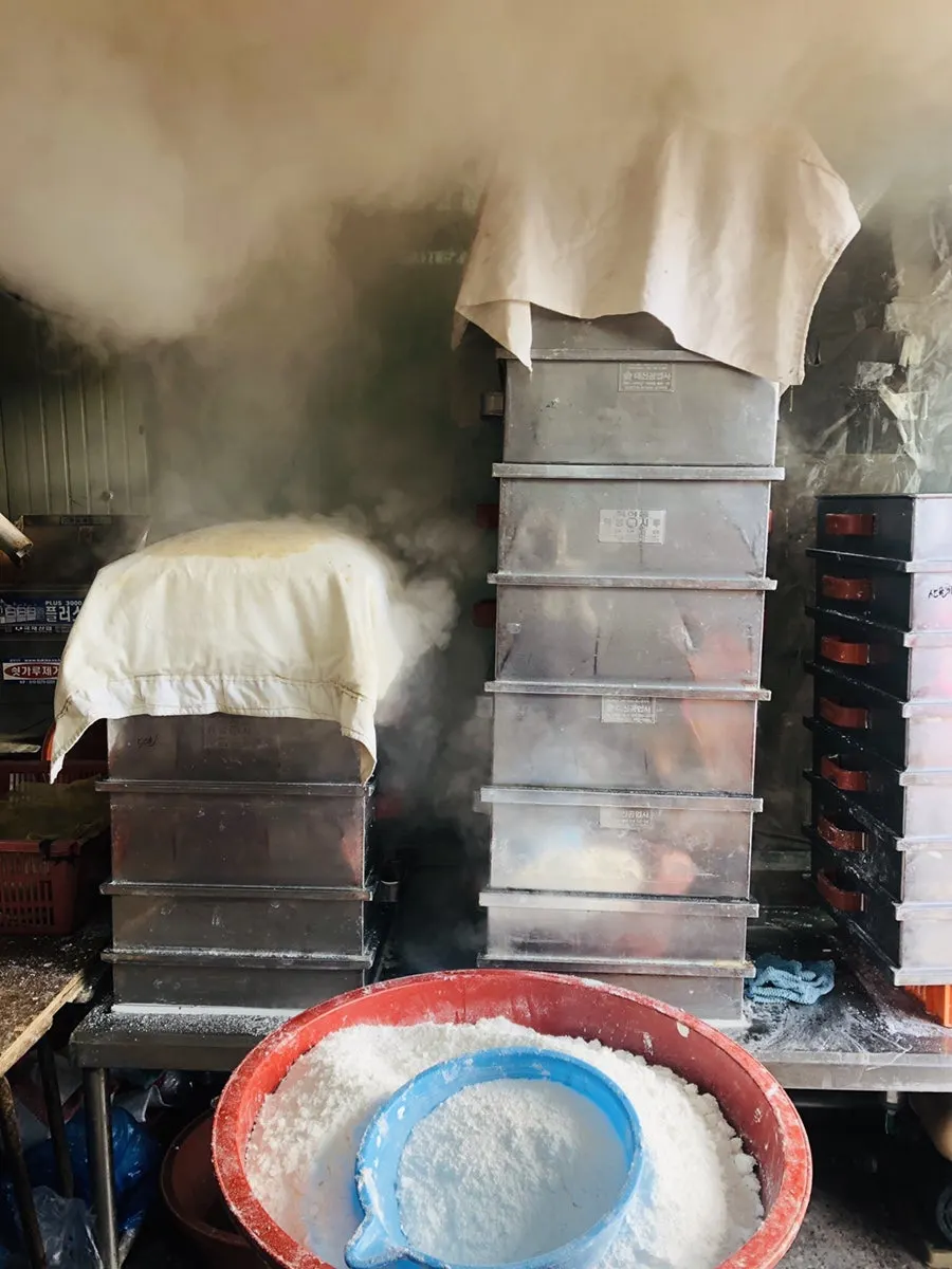 3. 시루에 쌀가루를 담아 김을 쏘여 찐다.(30분)