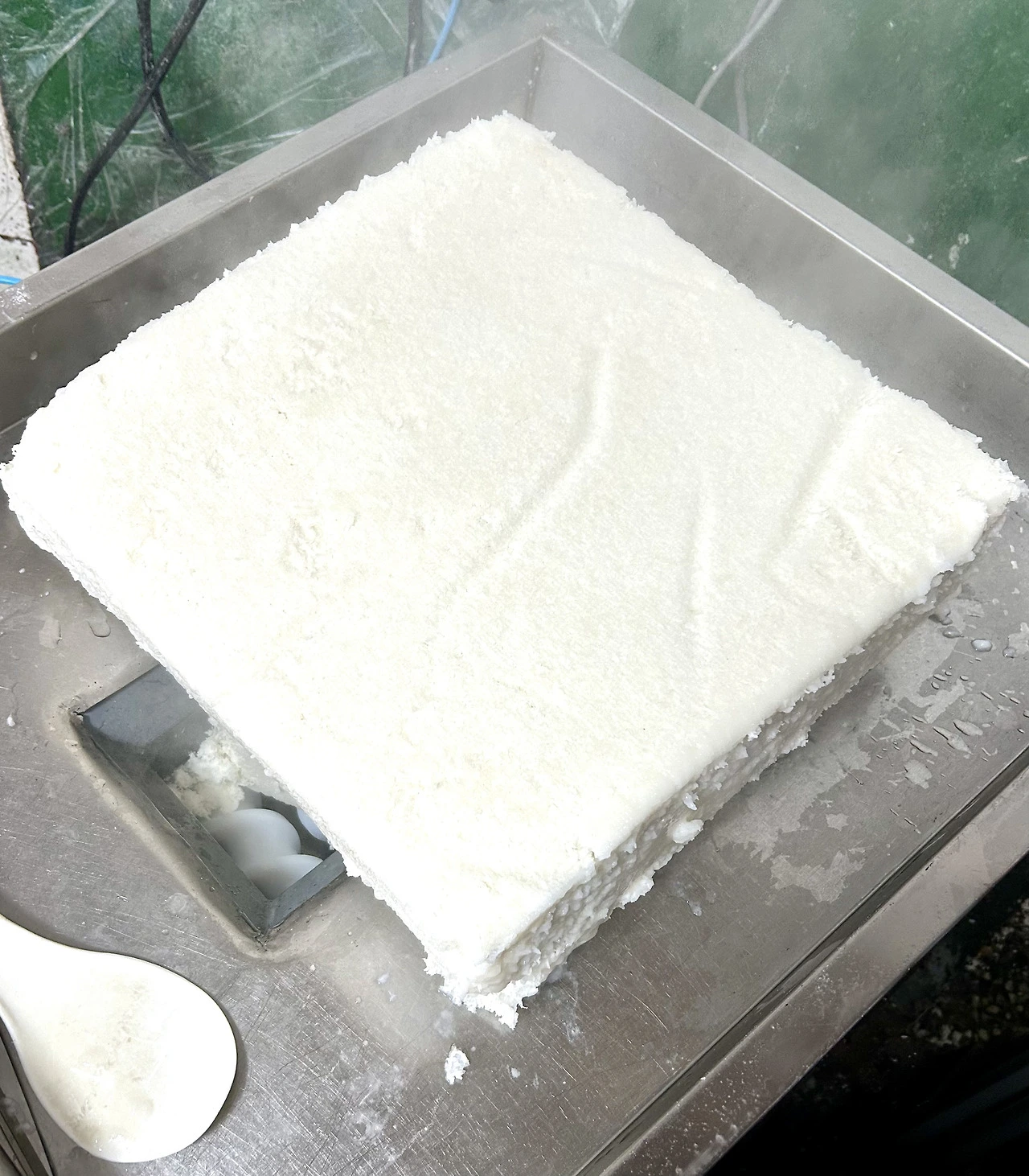 4. 찐 떡을 가래떡 빼는 기계 상판에 올려놓는다.