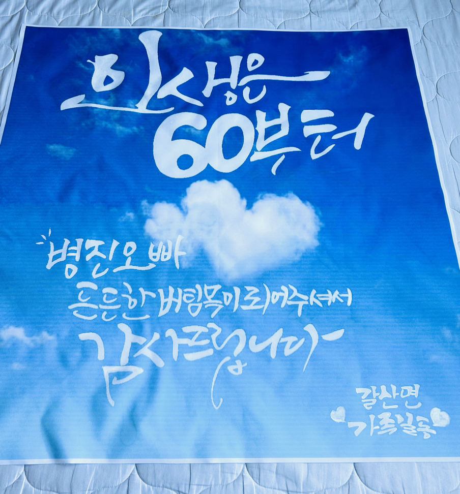 이런 흐뭇함이란... 정말 내가 환갑 현수막 문구를 썼다.