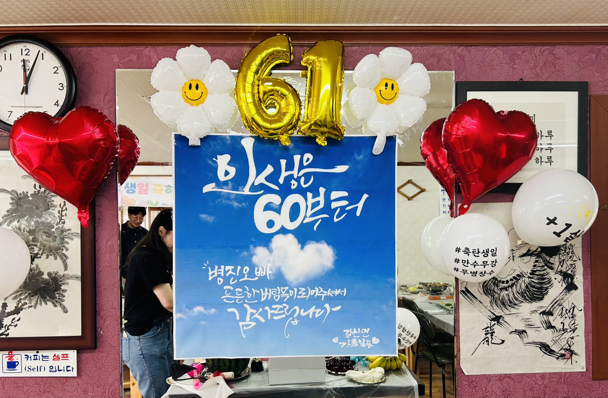지난 화요일(6월 20일), 행정복지센터에서 같이 근무하시는 주사님 중 환갑을 맞이한 분이 계셔서 다 함께 환갑파티를 열어드렸다.