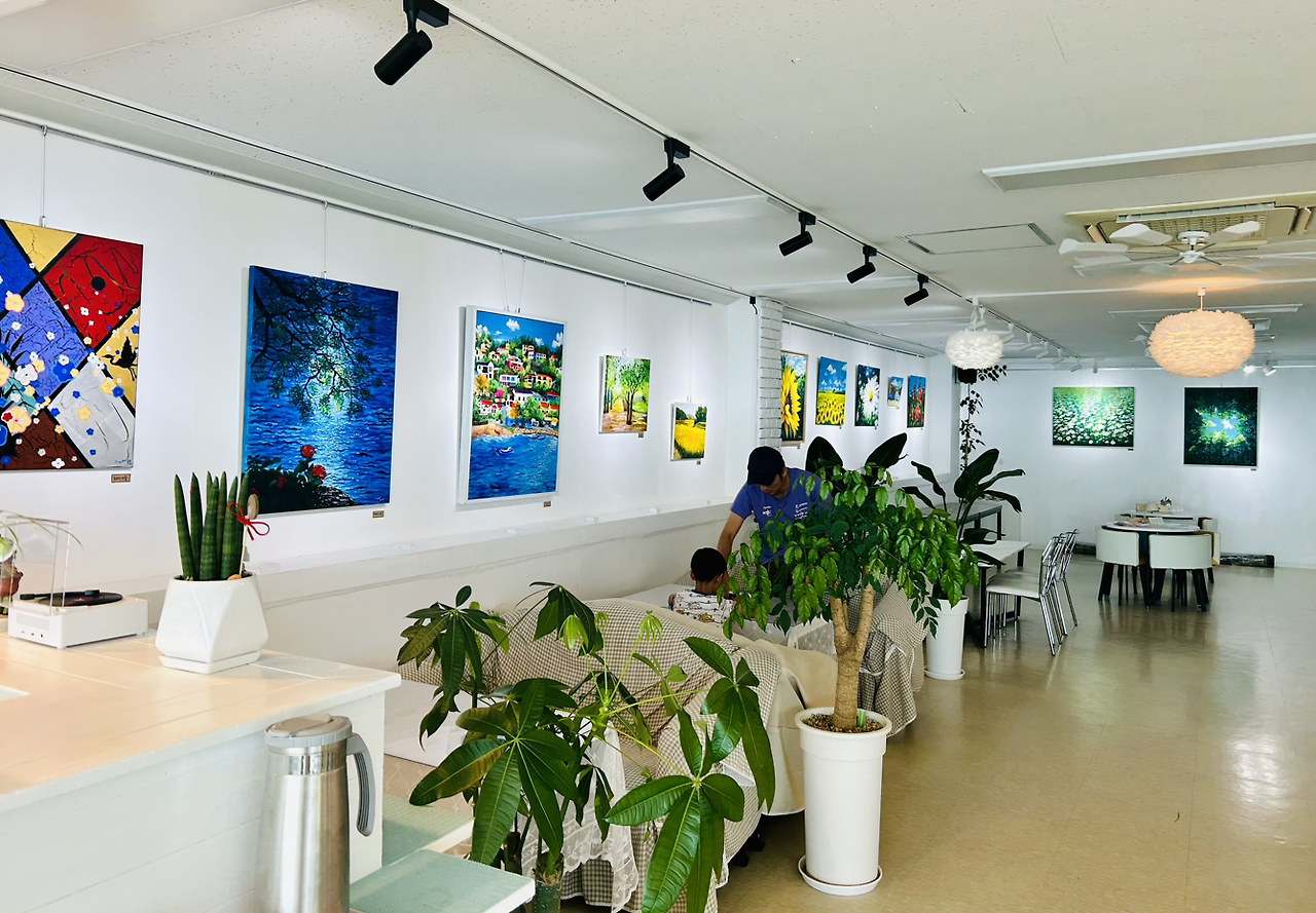 그림 그리는 친구와 글씨를 쓰는 친구가 속동 갤러리카페에서 그동안의 작품을 전시하고 있다고 했다. 서로 바쁜 일상에 쫓겨 5월 이후로 연락 한번 못했는데 이렇게 반가운 소식을 전해주니 가 봐야지.