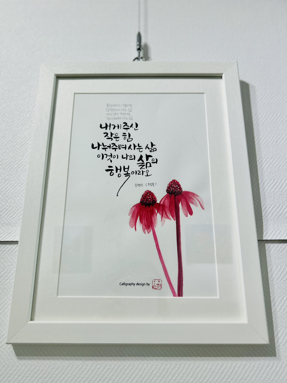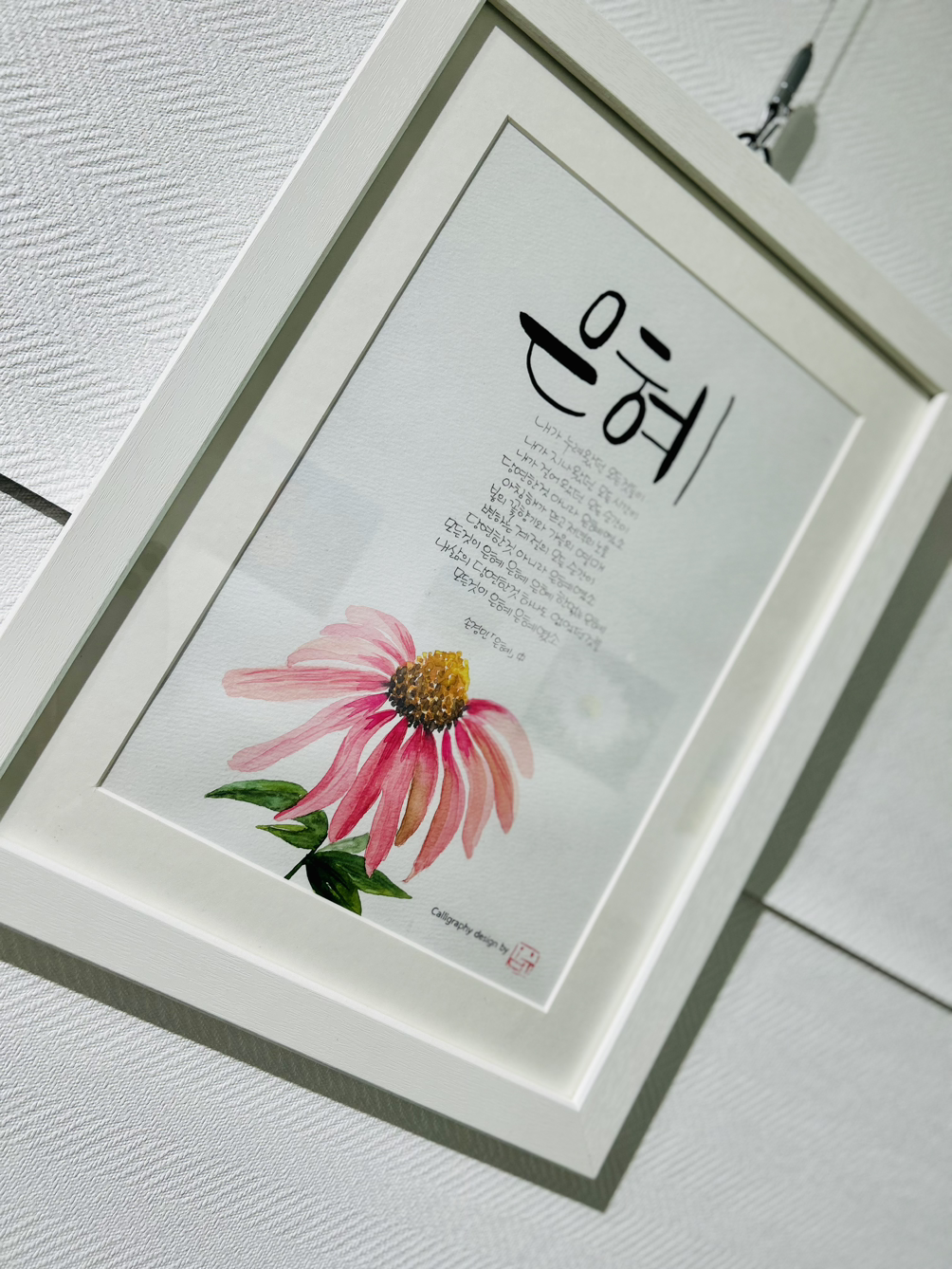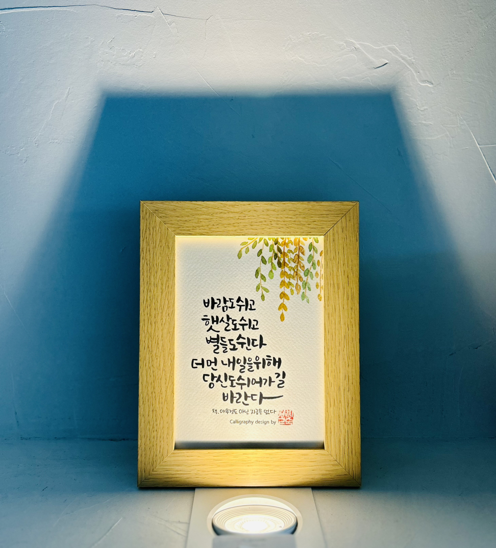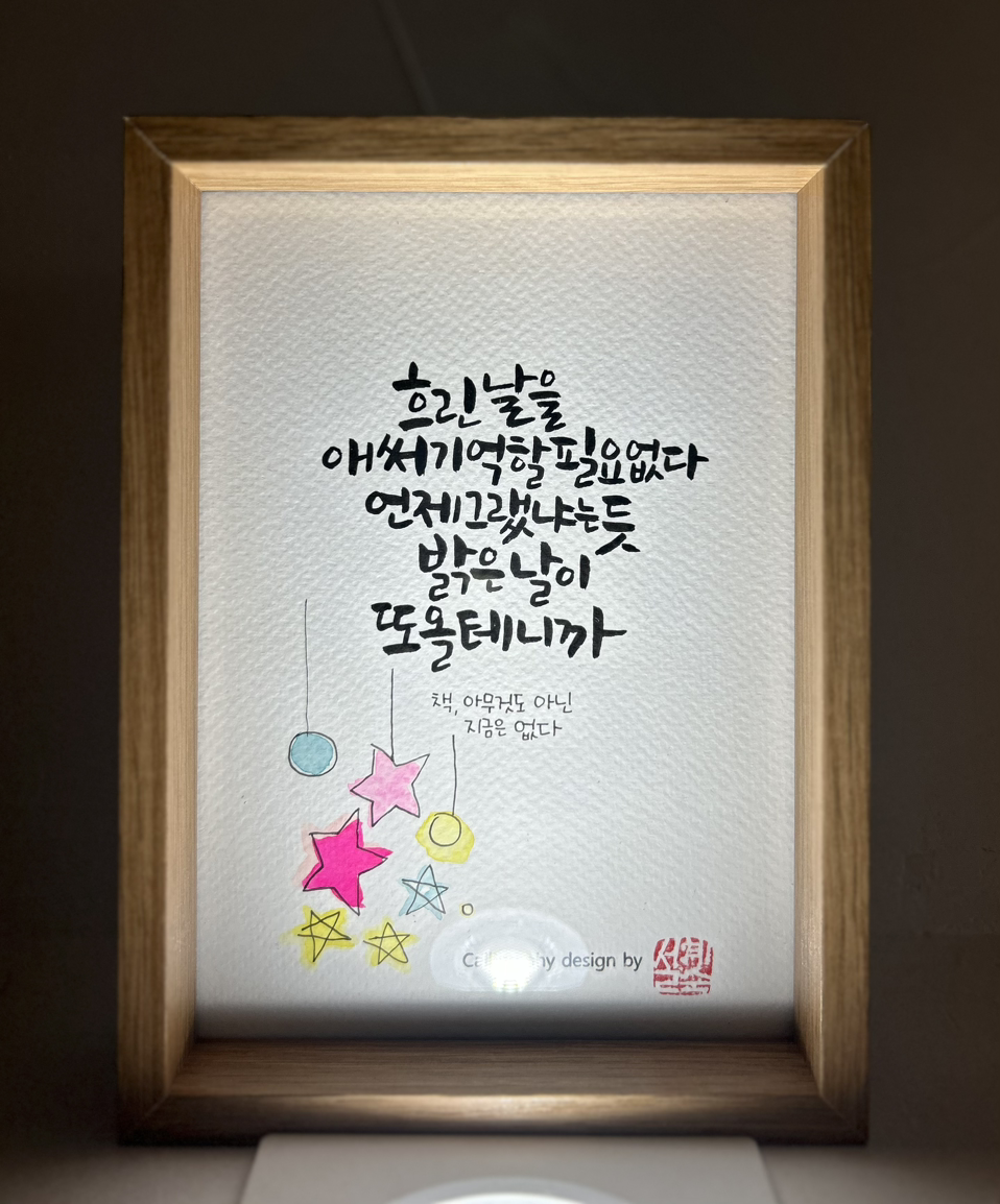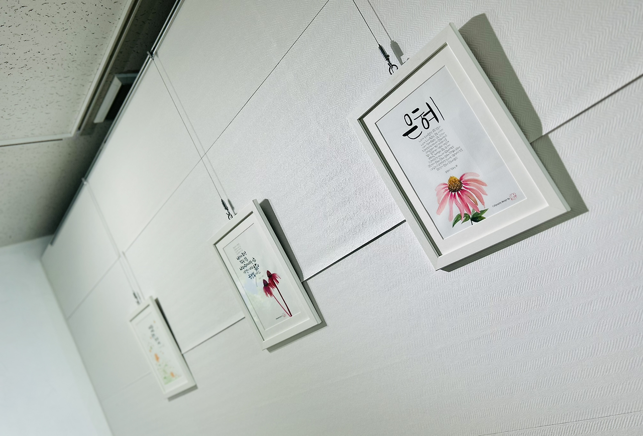 문을 열고 들어가자마자 오른쪽에 글씨 쓰는 친구의 작품이.