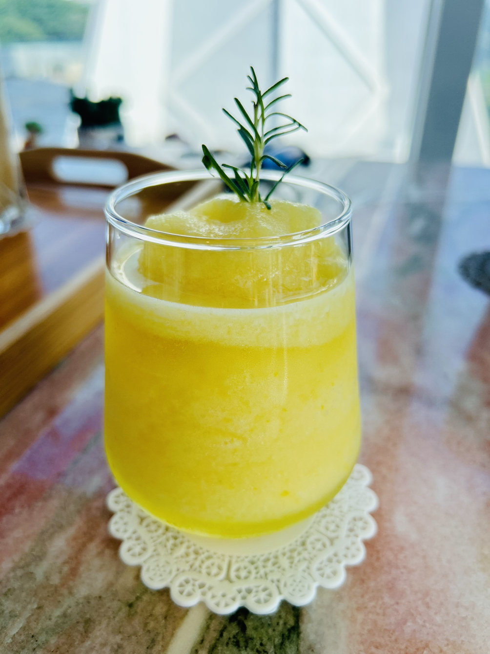 내가 주문한 파인애플 스무디. 신메뉴였는데 아주 탁월한 선택이었다. 달지 않아서 놀라웠고 좋았다. 보통 이런 거 사 먹으면 엄청 단데... 집에서 엄마가 만들어 준 것처럼 살얼음과 그야말로 온전한 파인애플즙. 계속 이래야 할 텐데...