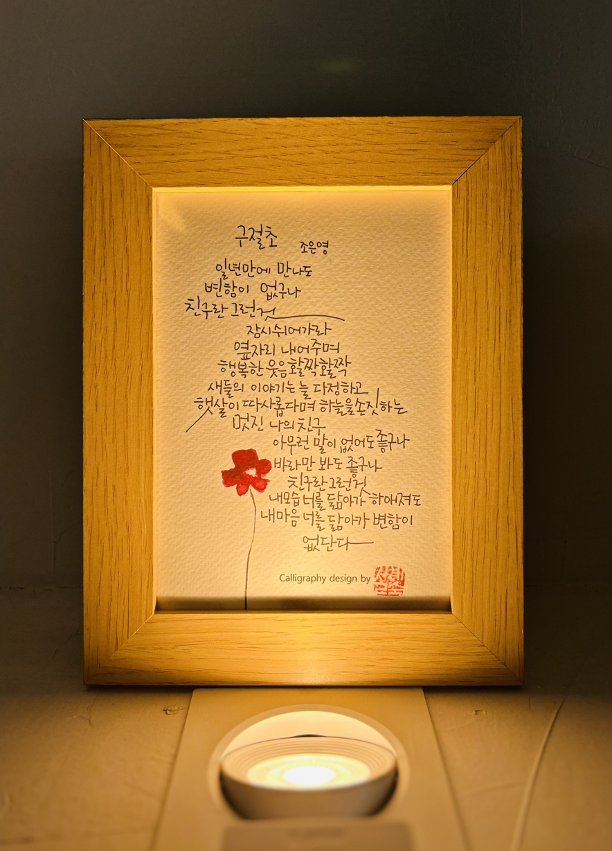 배경이 환해서 친구의 글씨가 살고 여백의 미 또한 돋보인다.