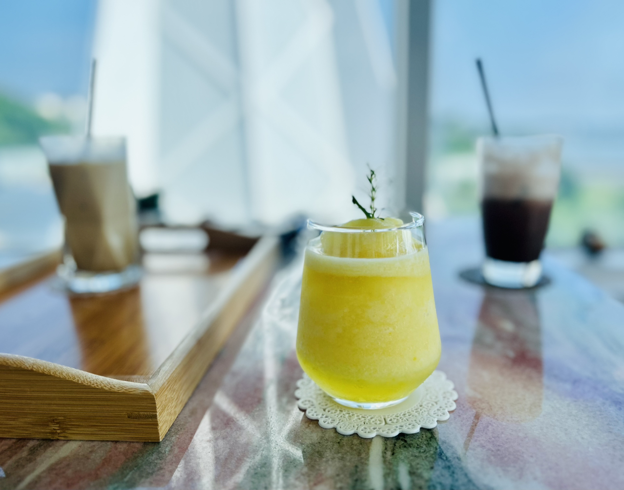 시원한 카페에서 바라보는 바깥 풍경은 더 이상 무더위가 아니다.