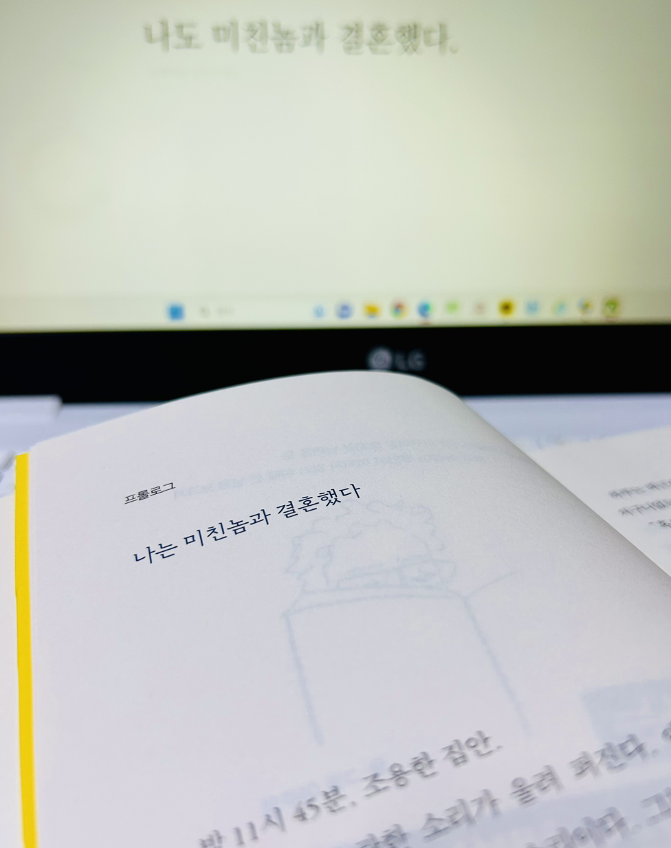 혼자보기 아까워 온라인 필사를 했다. 그러고 나서 나도 미친놈과 결혼한 나의 이야기를 살짝 써보려 한다.