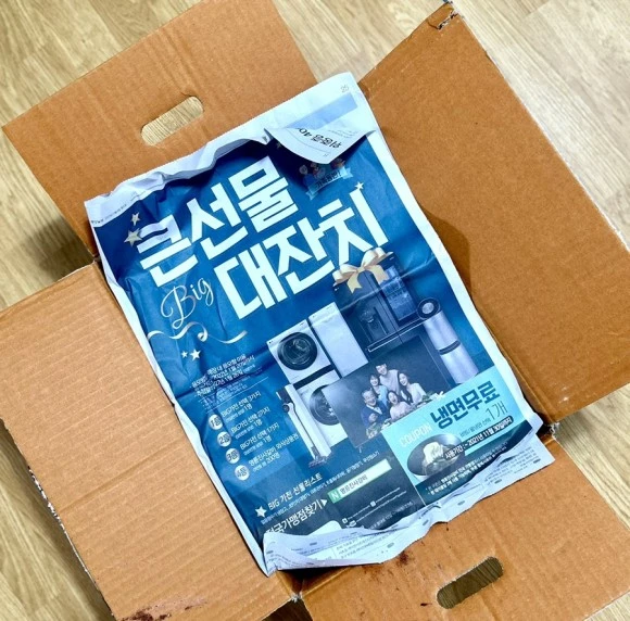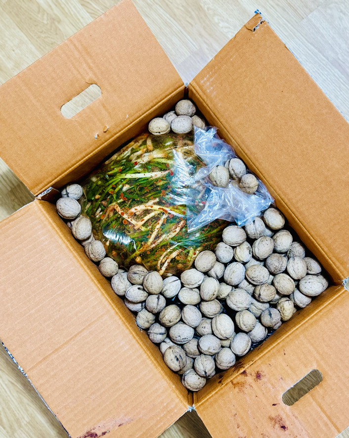 택배 상자를 열고 맨 위 신문지를 걷었더니 빈 공간에 호두가 가득 차 있었다.