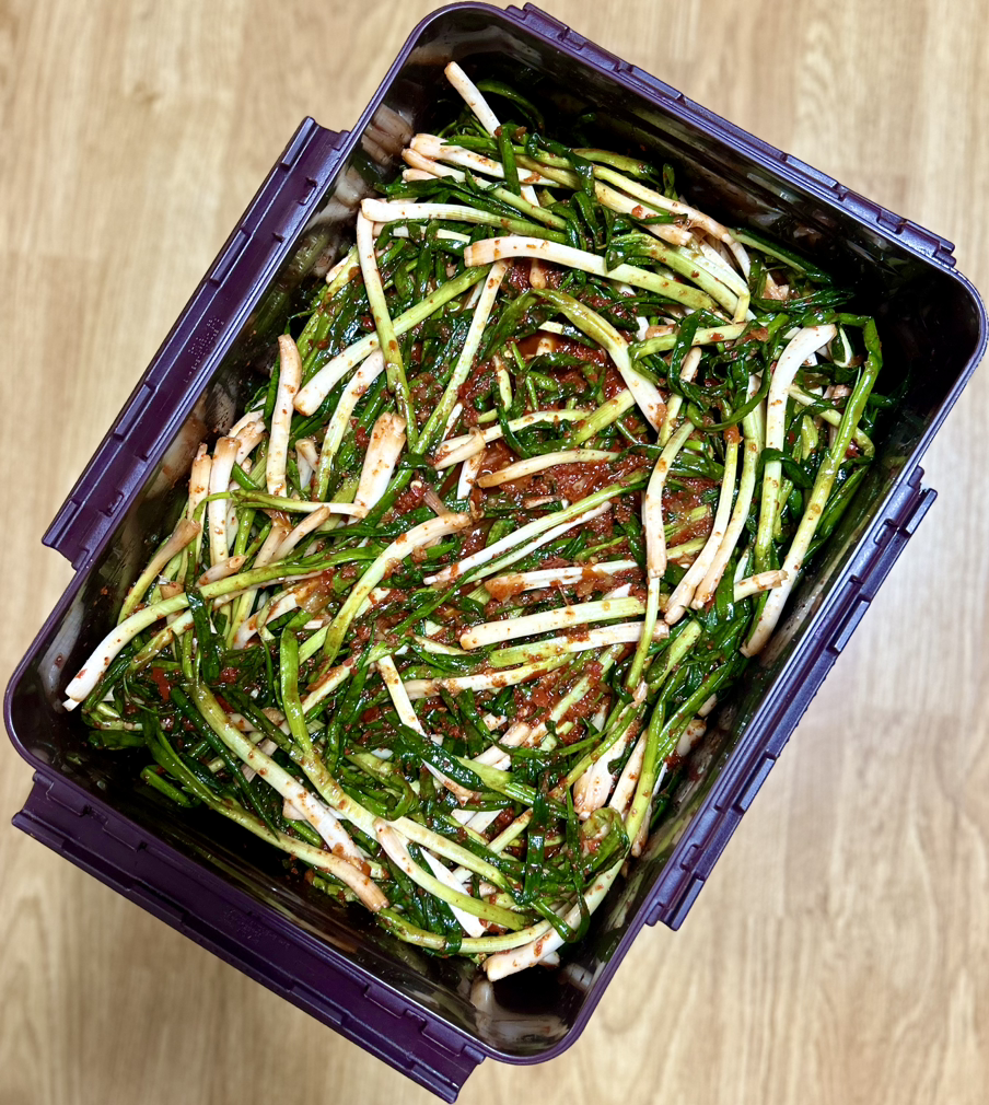 요즘 우리집 텃밭에도 겨울을 견디고 자란 쪽파가 많아서 보기만 해도 생기가 돋는다. 나는 주로 그때그때 데쳐서 파나물을 해 먹곤 하는데, 허리도 안 좋으신 엄마가 딸내미 주고 싶은 마음에 부지런히 파김치를 하셨다고.. 에고 ㅜㅜ 터치만 하면 걸리는 전화도 바쁘다는 핑계로 자주 못 드리는 못난 딸내미인데 엄마는 뭐가 예쁘다고..