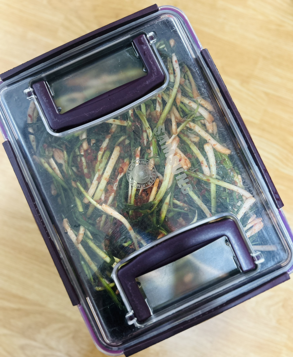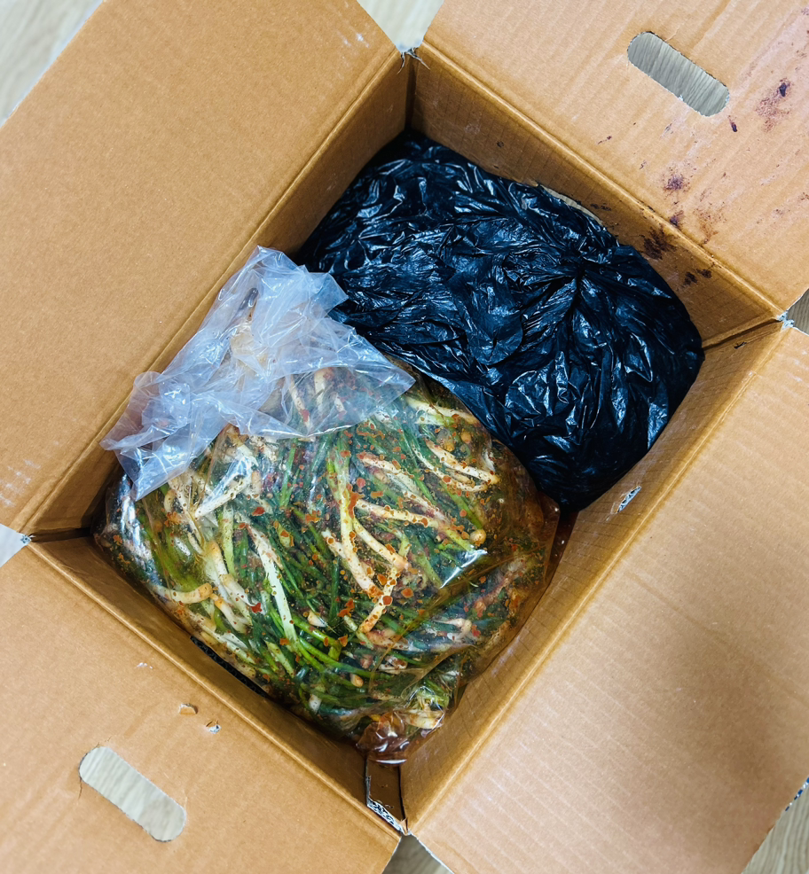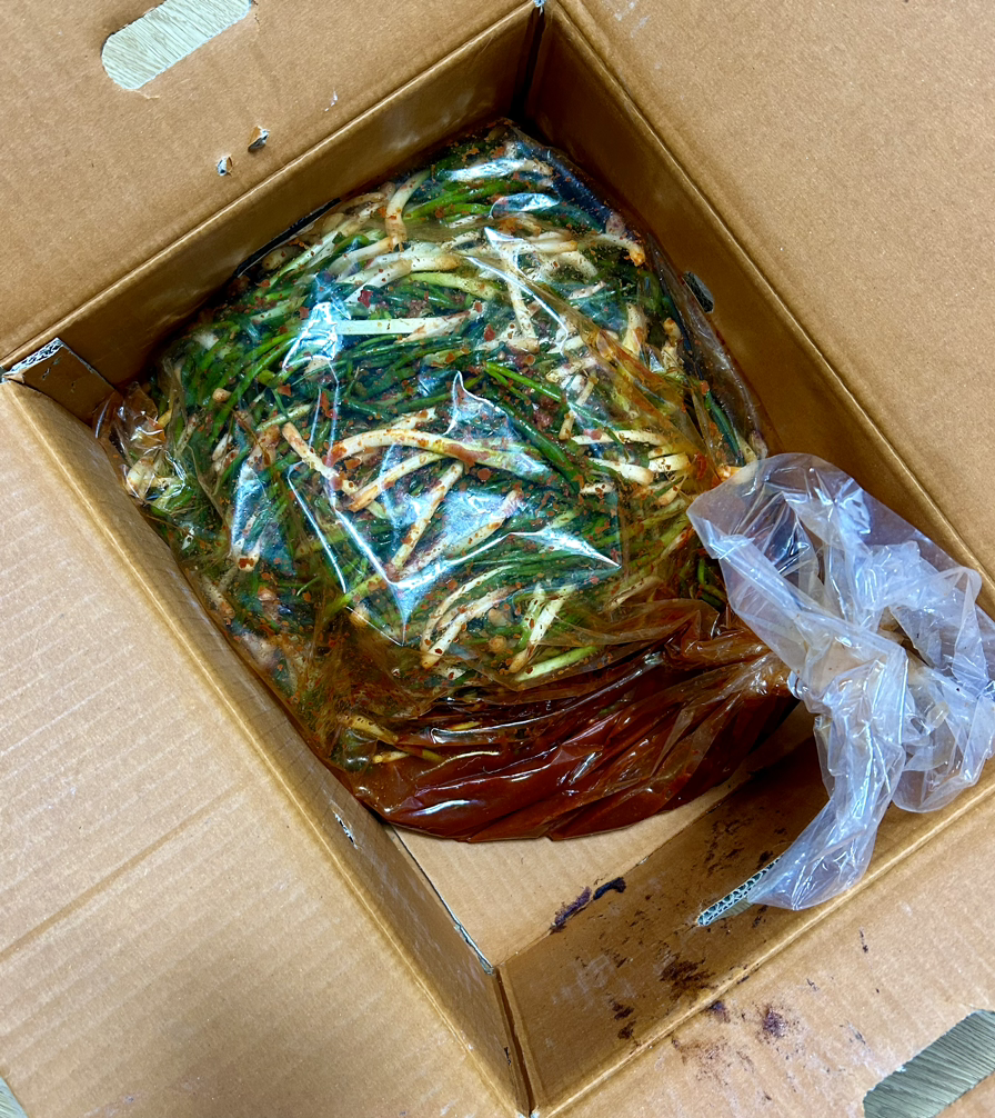 보물을 발견해 나가듯 하나씩 조심스럽게 꺼내보다 드디어 파김치를 열어볼 차례가 왔다.