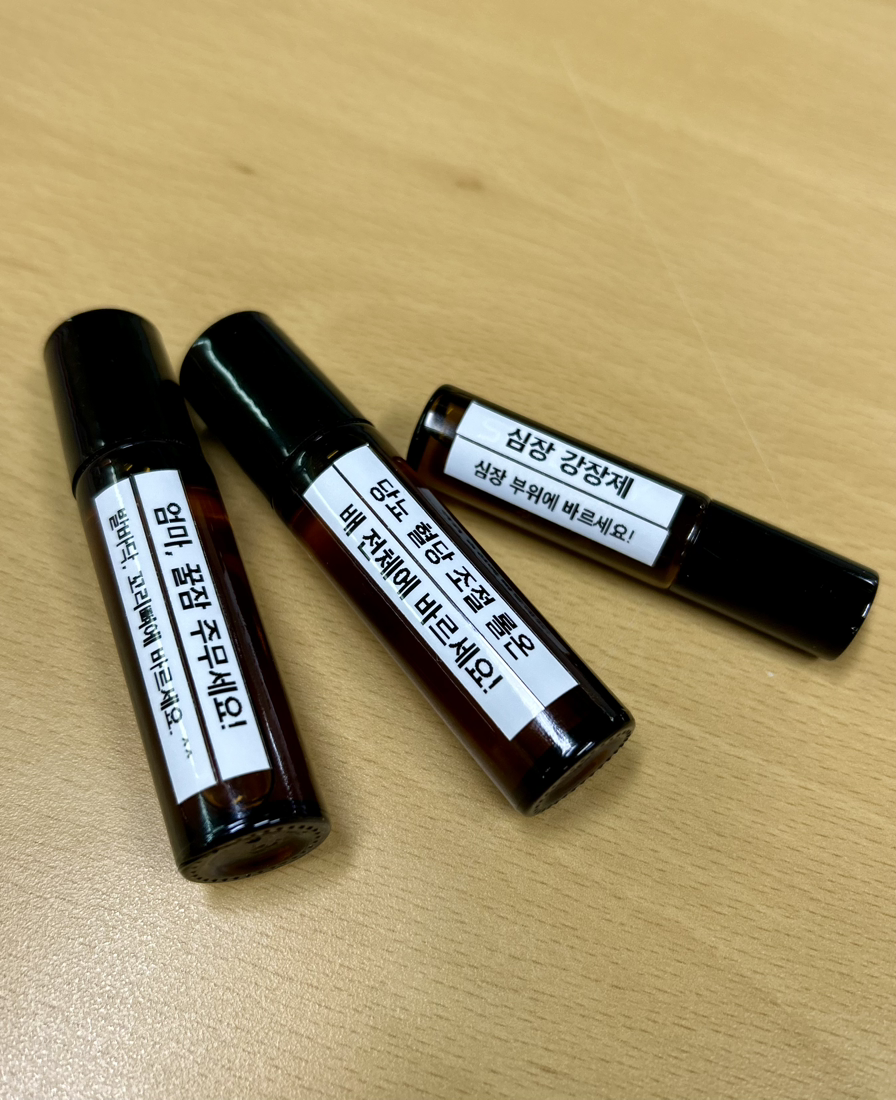 두 번째는 당뇨약을 매일 드시는 엄마를 위해 혈당 조절에 도움이 되는 오일들로 블렌딩을 해서 혈당조절 롤온도 만들었다.