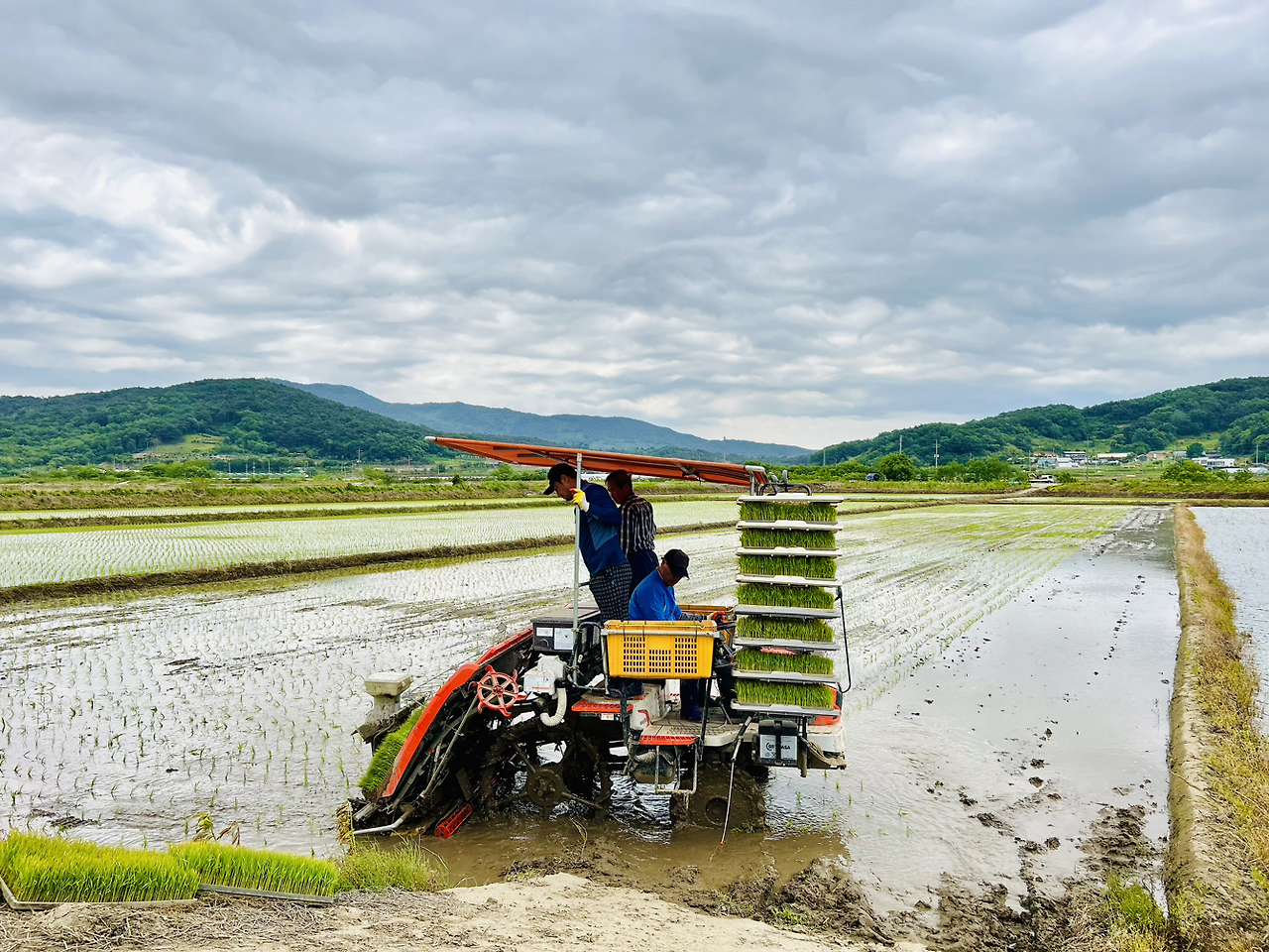 모를 심어주신 아저씨께서도 김밥을 좋아하시는데 직접 싼 김밥이라 하니 표정이 아주 밝아지셨습니다. ㅎ