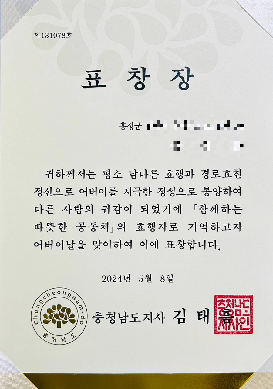 ‘효부(孝婦)’라는 단어를 떠올리고 입에 담을 수도 없는데, 어떻게 내가 어버이날 유공 표창을 받게 되었을까 고민이 깊었습니다.