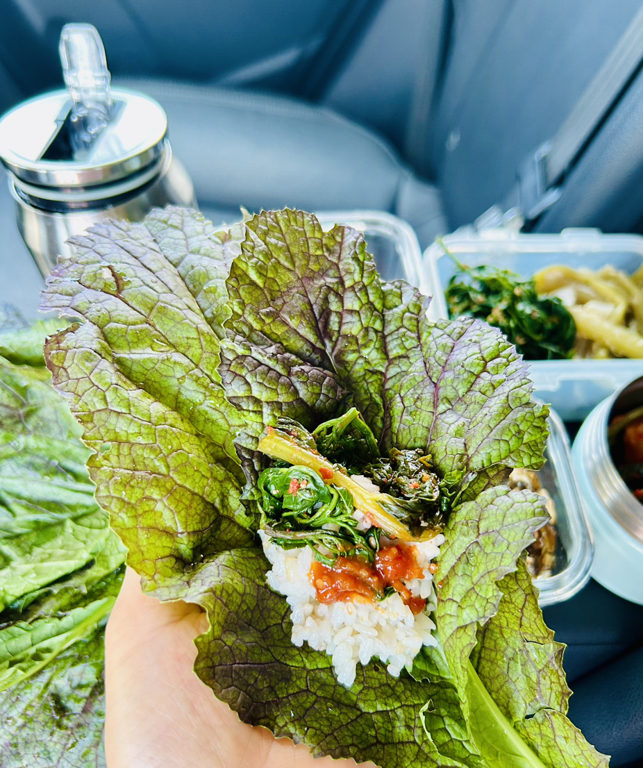 적겨자잎으로 싼 쌈이 정말 기막히게 맛있었다.