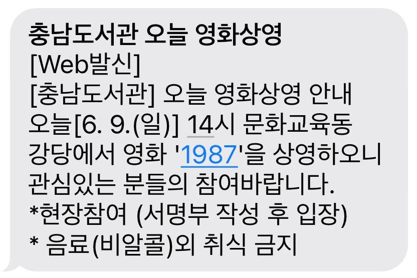 지난 2024년 6월 9일(일요일), 충남도서관에서 아이들과도 봤습니다. 가는 김에 아이들의 친구들도 데리고 갔습니다. 어려서 이해하기 어렵더라도 봐두면 다음에 역사를 배울 때 ‘그때 그 장면’이 하나라도 떠올려질 거라고 말해주고 일단 보자고 했습니다.