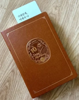 코로나 때 한정판으로 나온 10년 다이어리를 나에게 선물했다. 10년을 한 권에 기록할 수 있다는 게 가장 큰 매력이었고 표지가 천연 가죽이라서 시간이 흐를수록 소장 가치도 그만큼 더해질 것이므로 망설이지 않고 들였다.