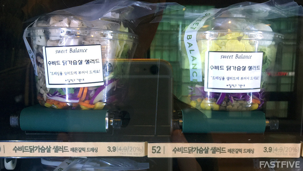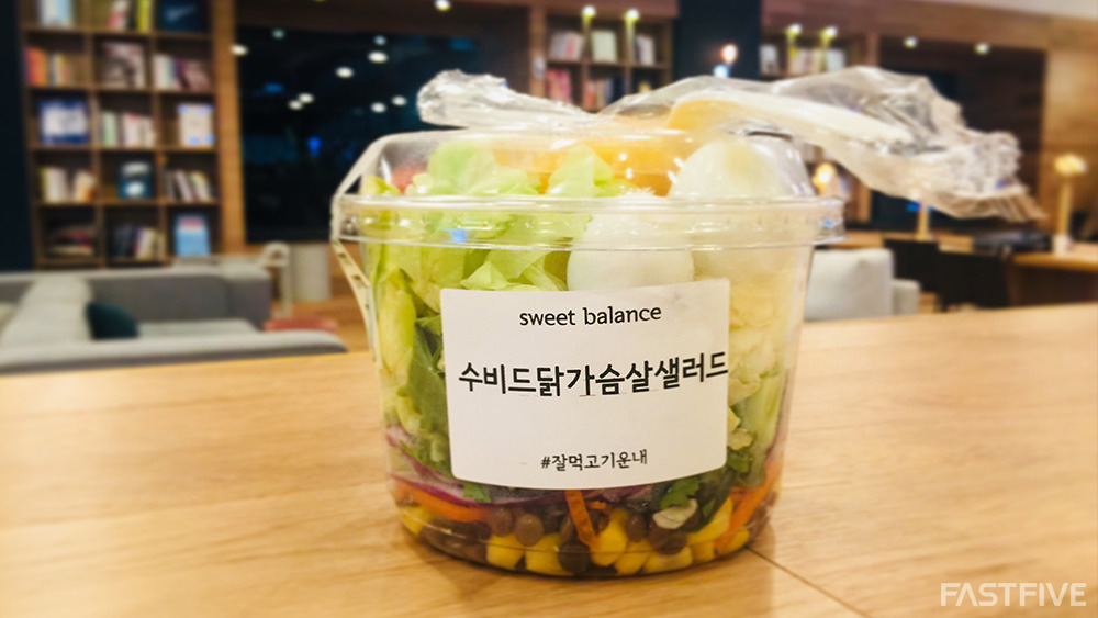 샐러드는 식사나 간식 용도에 따라 2가지 용량을 선택할 수 있고, 개인의 취향을 고려해 다양한 메뉴를 제공하고 있습니다. 무엇보다 패스트파이브 멤버 혜택으로 20% 할인 판매 중이기 때문에 신선한 샐러드를 합리적인 가격에 이용할 수 있는 장점이 있습니다.